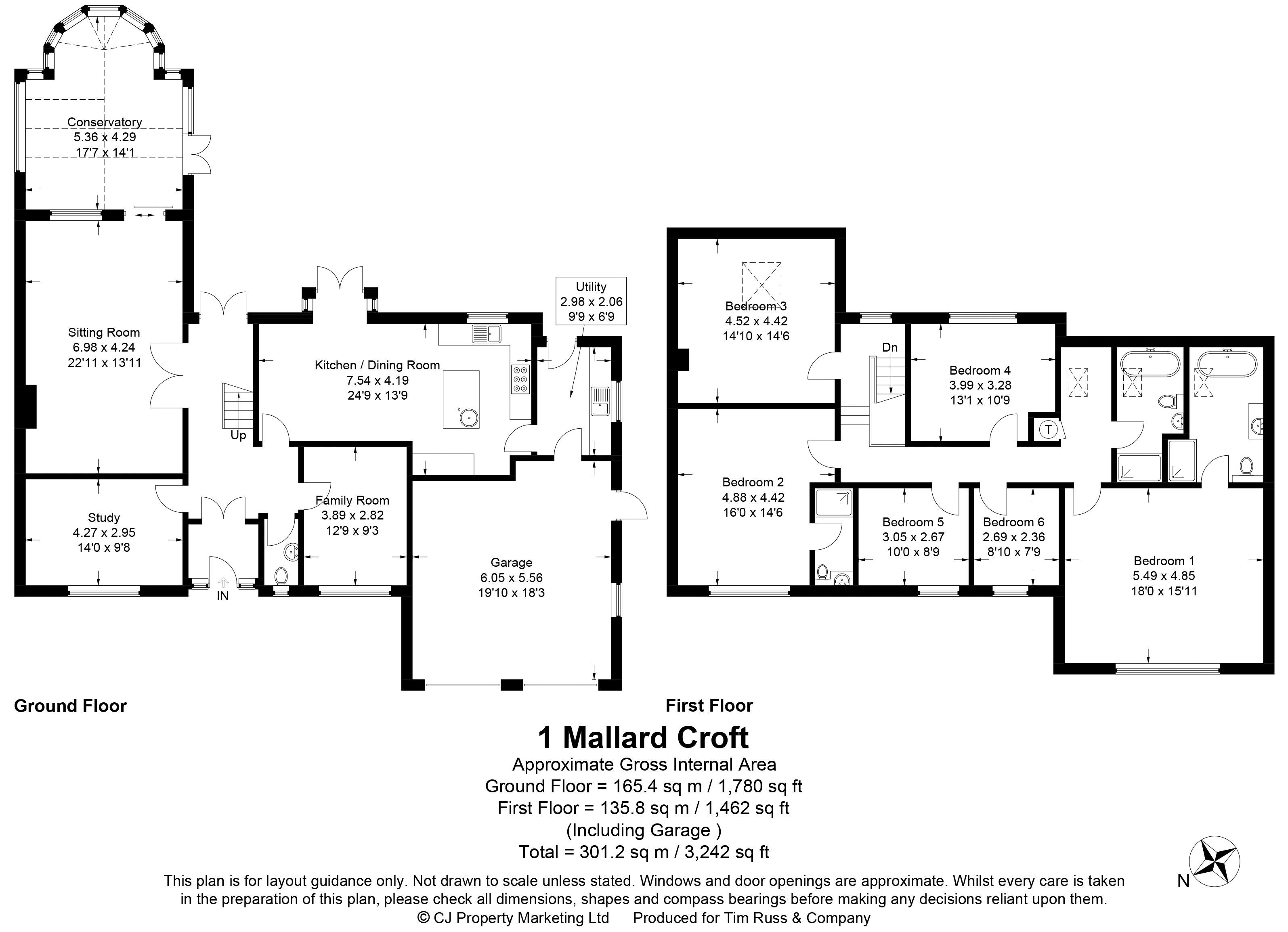 On the first floor the master bedroom has a newly installed en suite bathroom. The guest bedroom also has an en suite shower room and the further four bedrooms are served by the family bathroom, which has also been refitted.