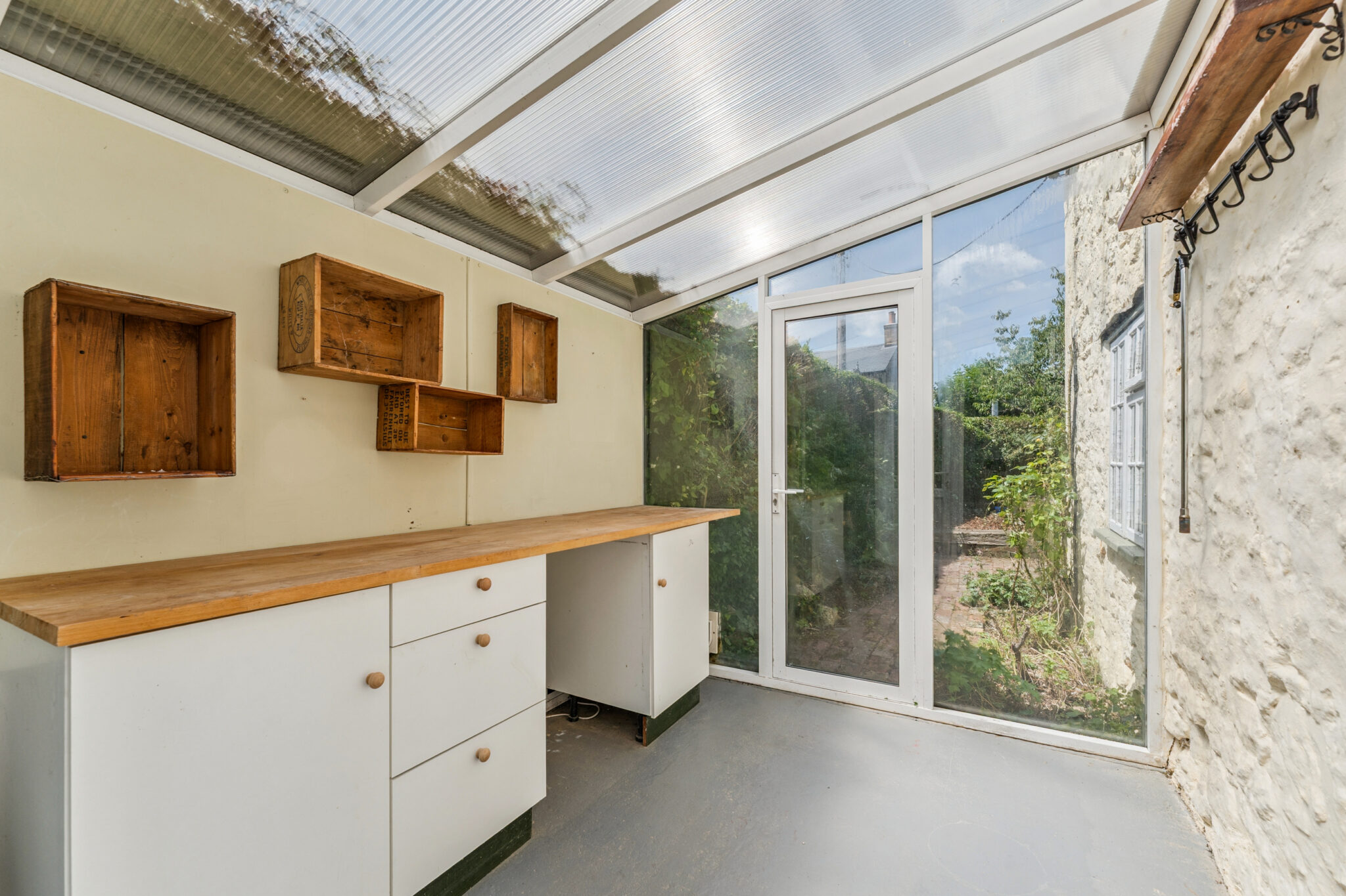 The entrance hall leads to the centre of the cottage. The sitting room is charming and light floods in from the three windows. The fireplace has an attractive wood burning stove. From here there is access to both the dining room and the kitchen. The kitchen is fitted with a range of units with an oven and hob. A back door goes through to the conservatory. A stunning vaulted breakfast room/study is situated directly adjacent to the kitchen. There is also a large downstairs bedroom/further reception space and a downstairs shower room concludes the ground floor.