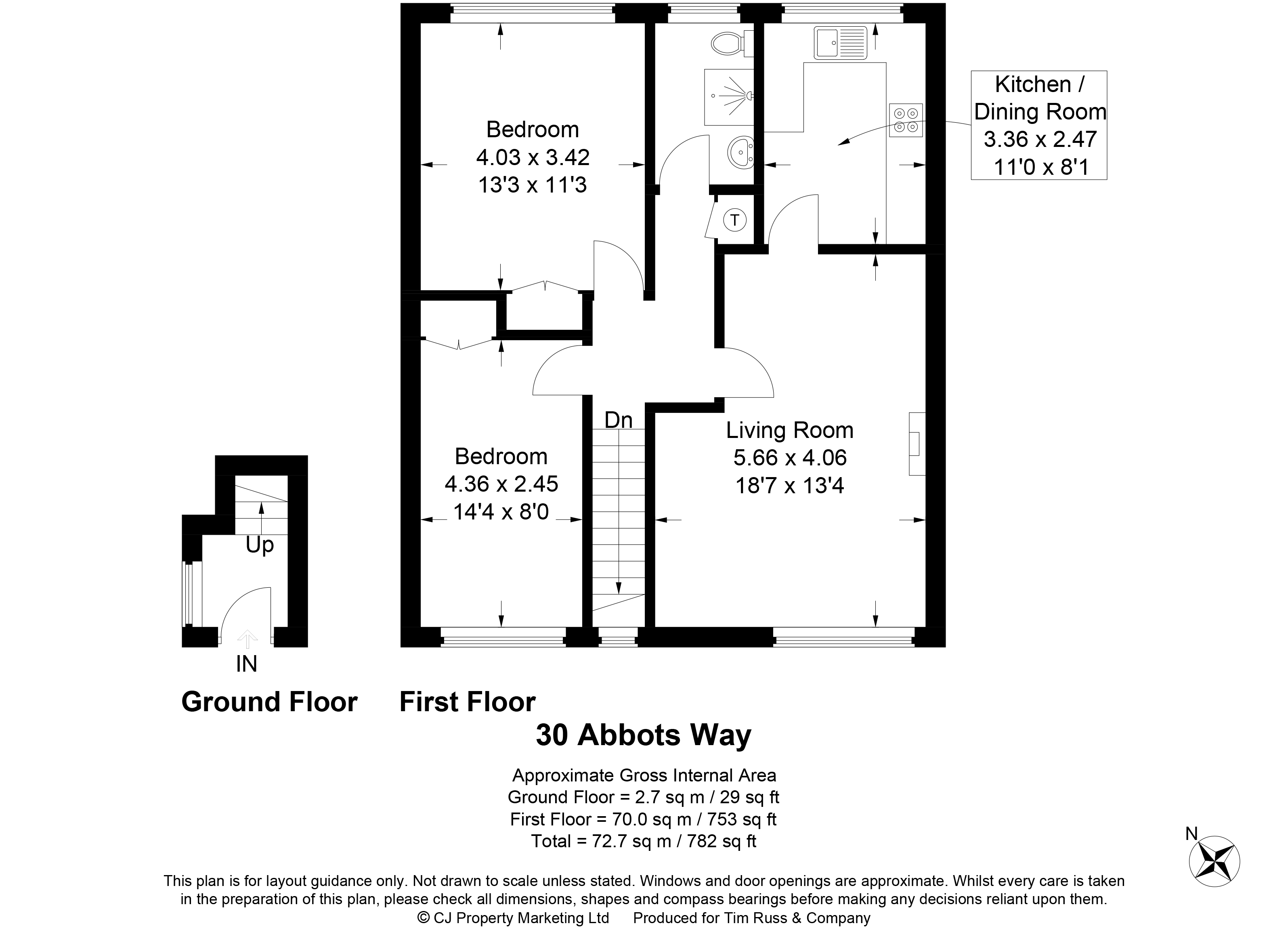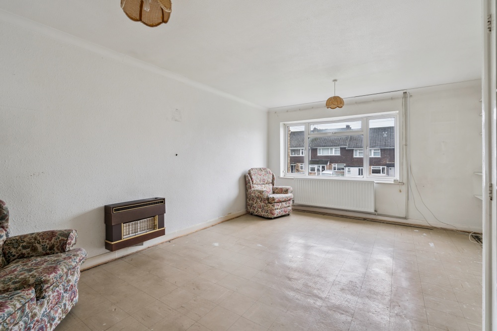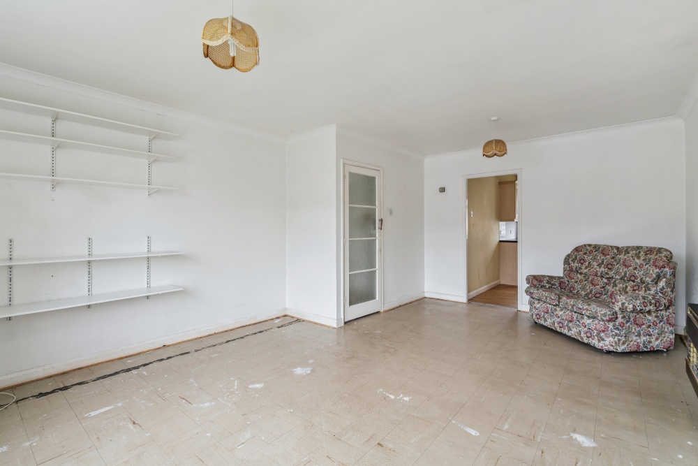 The property comprises a generous living/dining room. There’s a separate kitchen ready for updating to modern standards, along with a family bathroom. Two good‑sized bedrooms provide comfortable accommodation.