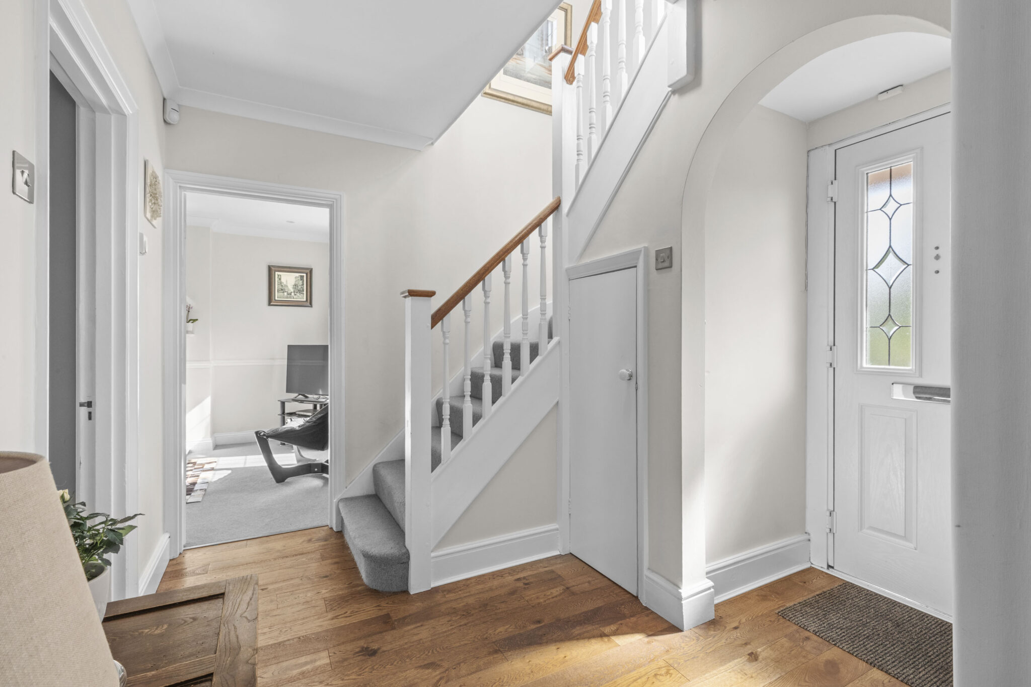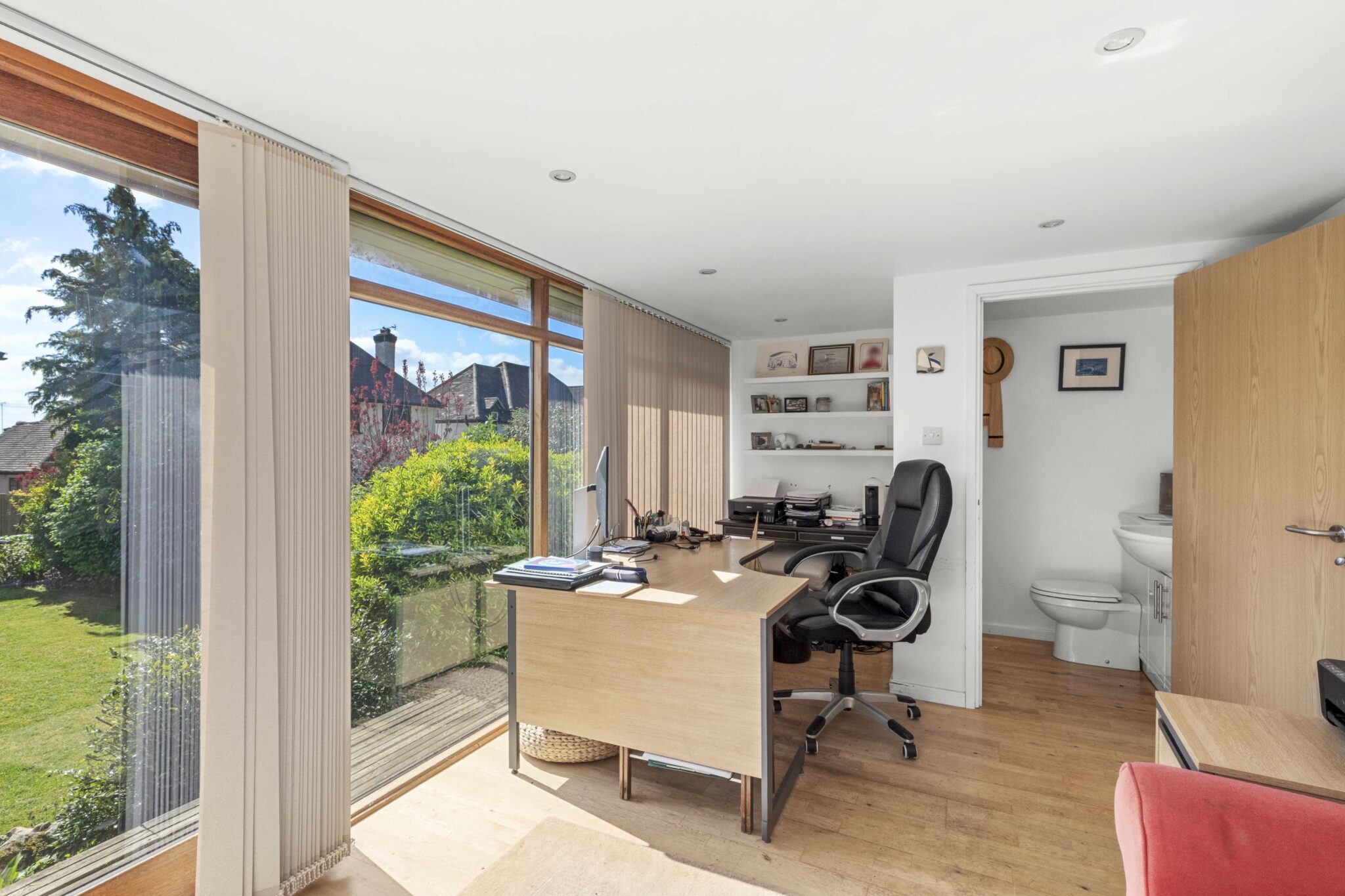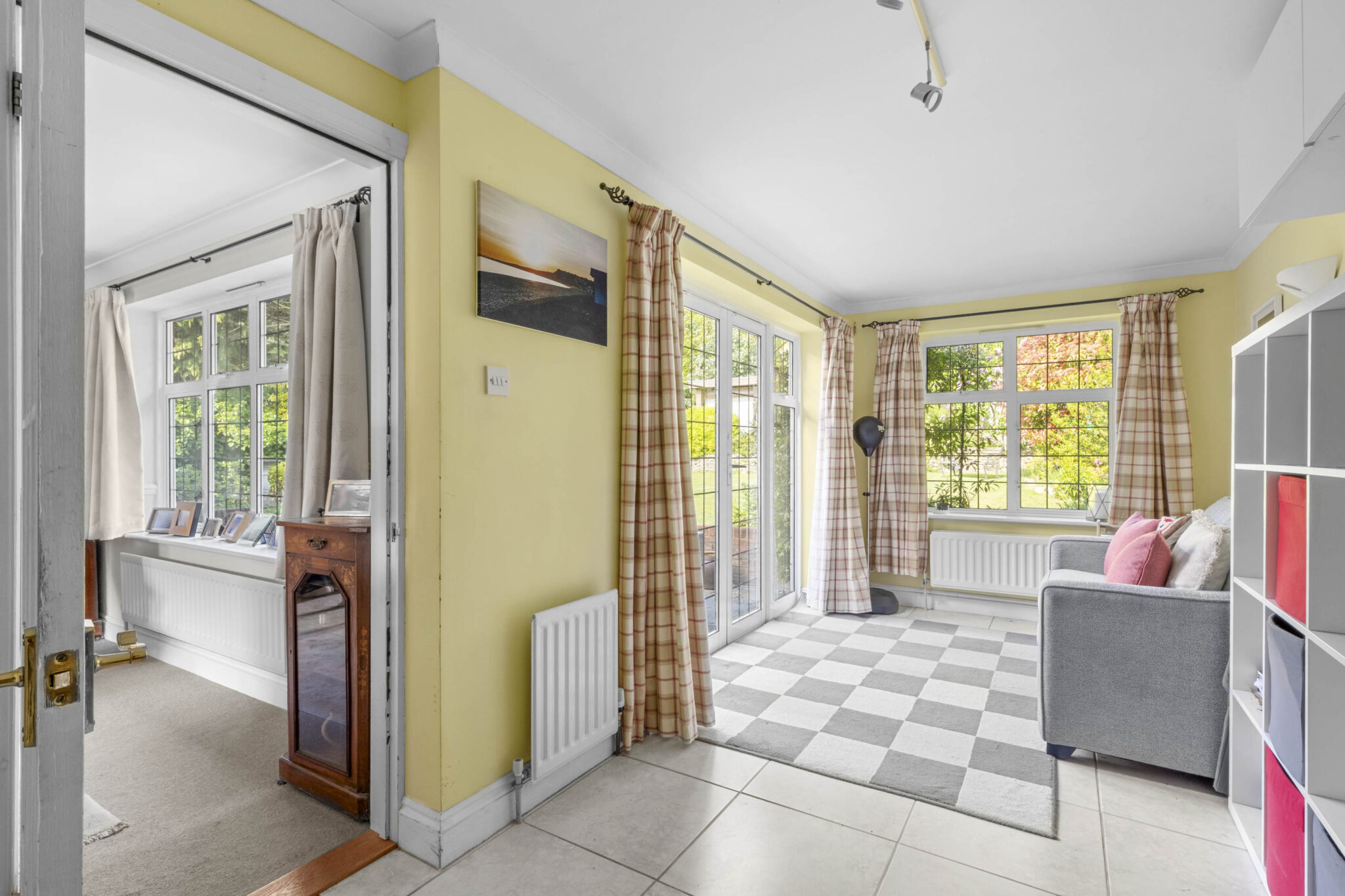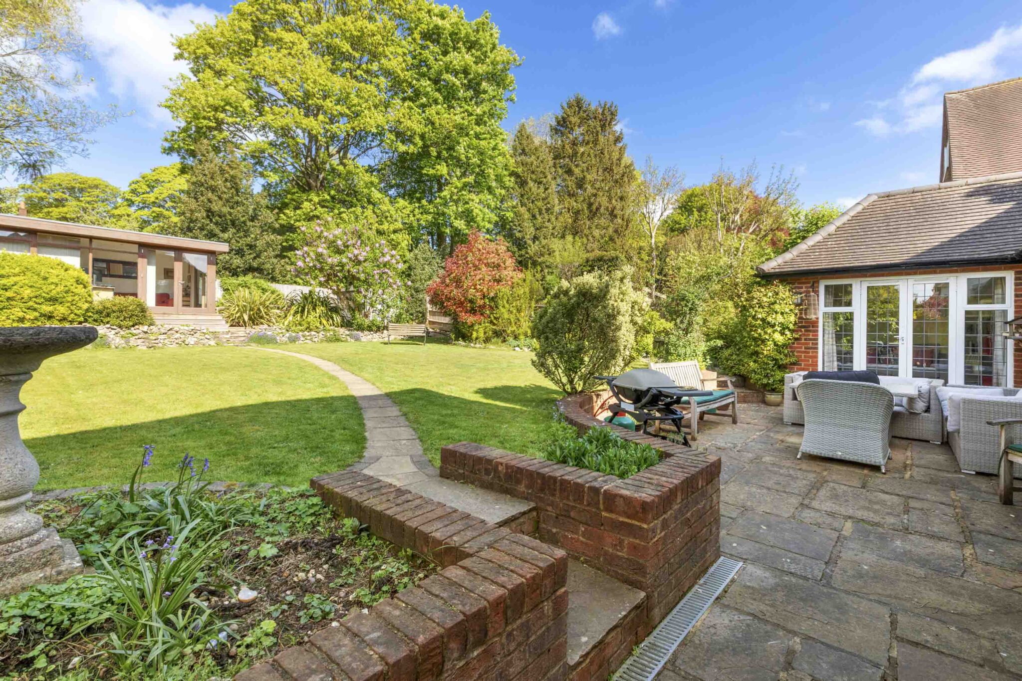 The property is set within mature, landscaped gardens that offer a tranquil retreat and plenty of space for outdoor living. Multiple patio areas and a generous lawn are ideal for al fresco dining, entertaining, or simply relaxing amidst lush greenery and mature trees. Additional highlights include a detached garage and ample off-road parking via a gated entrance and spacious driveway, ensuring both convenience and security. A modern garden office or studio provides the perfect space for remote work or creative pursuits, with heating, power and wc. The home’s period features, such as the distinctive half-timbered facade and classic architectural details, lend character and kerb appeal. Further benefits include a welcoming hallway with elegant hardwood flooring, built-in storage throughout, heated towel rails in the bathrooms, and efficient radiator heating for year-round comfort. This remarkable property delivers a harmonious blend of style, space, and practicality, making it an outstanding opportunity for those seeking a high-quality family home with exceptional lifestyle advantages.
