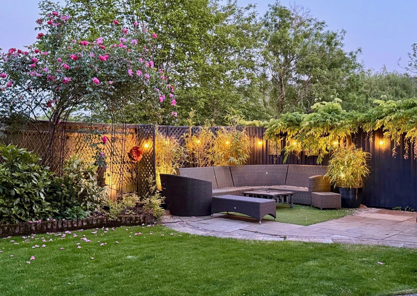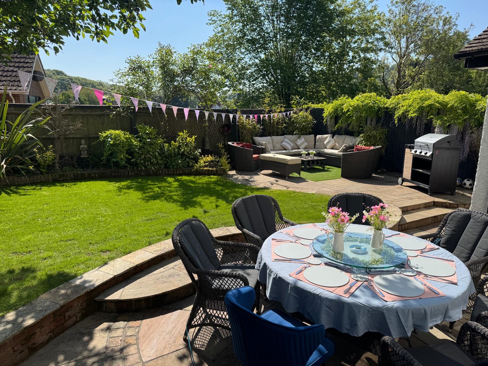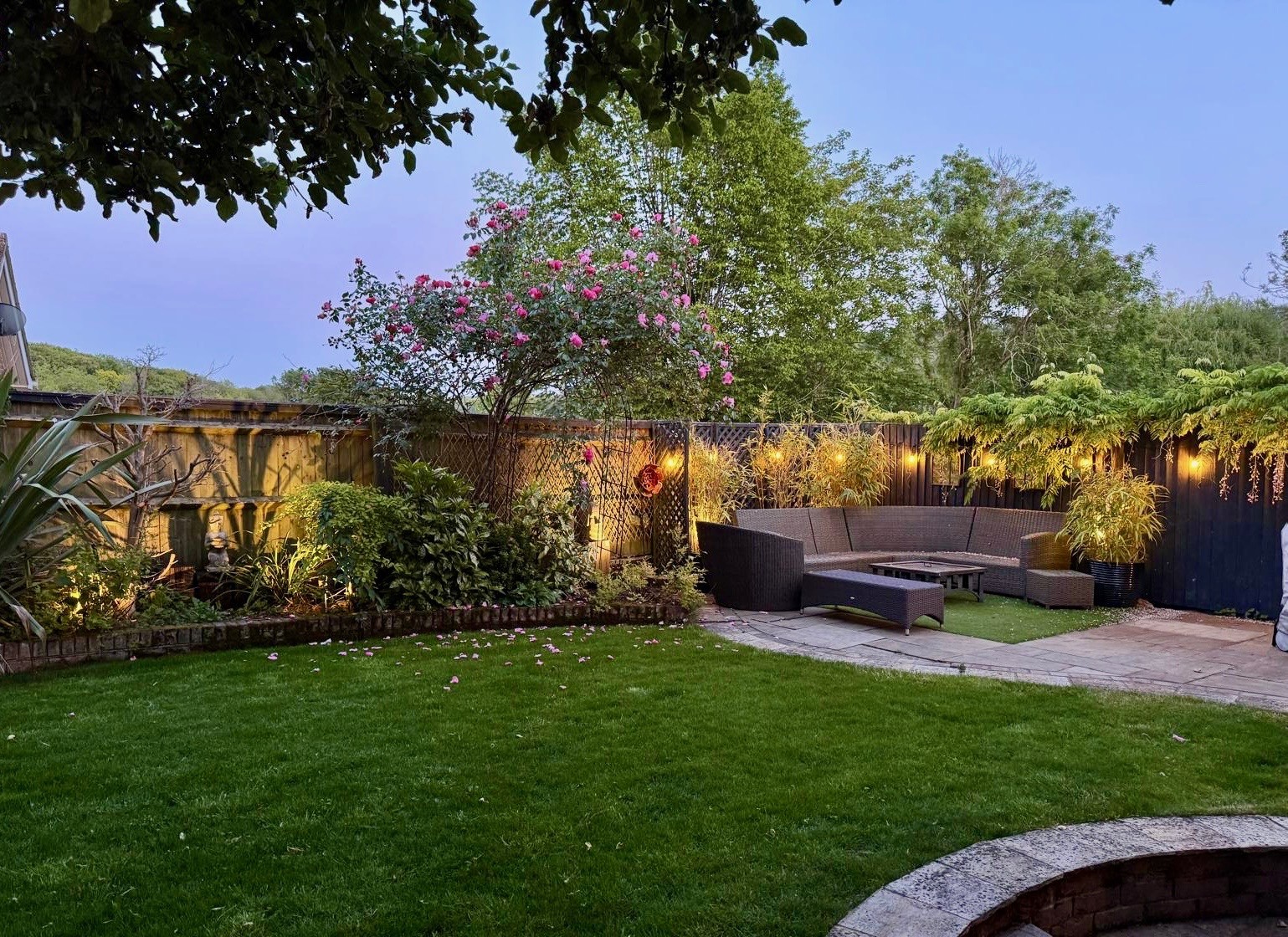 • Beautiful rear garden with multiple terrace areas to enjoy the sun at different times of the day with an array of shrub and tree borders giving a variety of interest