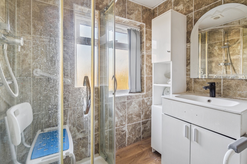 To the first floor are three bedrooms and a three-piece shower room.