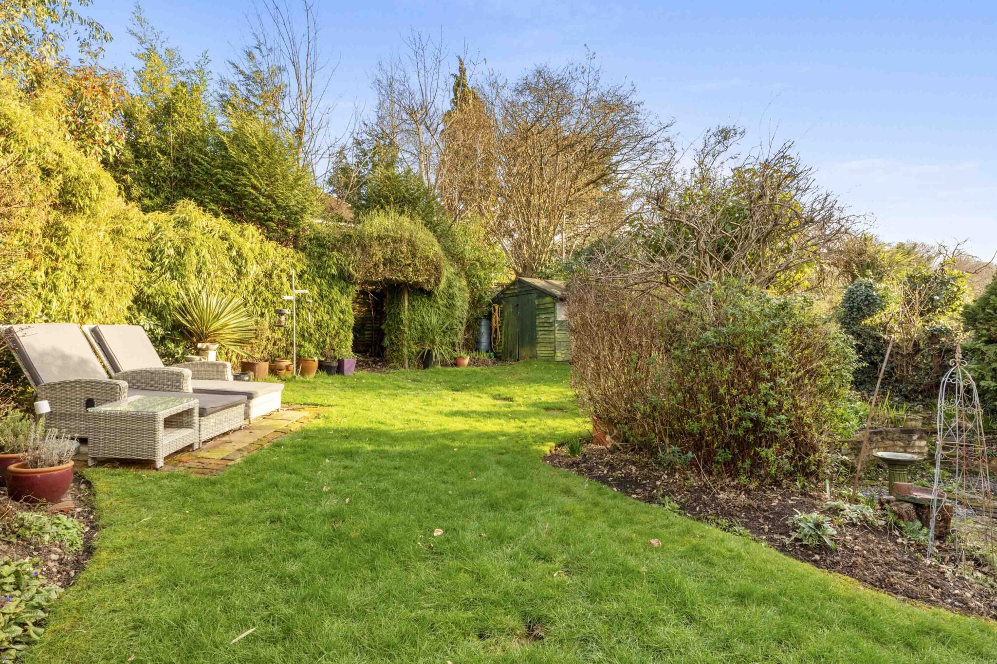 Outside, the rear garden offers a private and peaceful retreat, with a patio ideal for outdoor dining and relaxing. A useful lean-to to the side provides excellent additional storage.