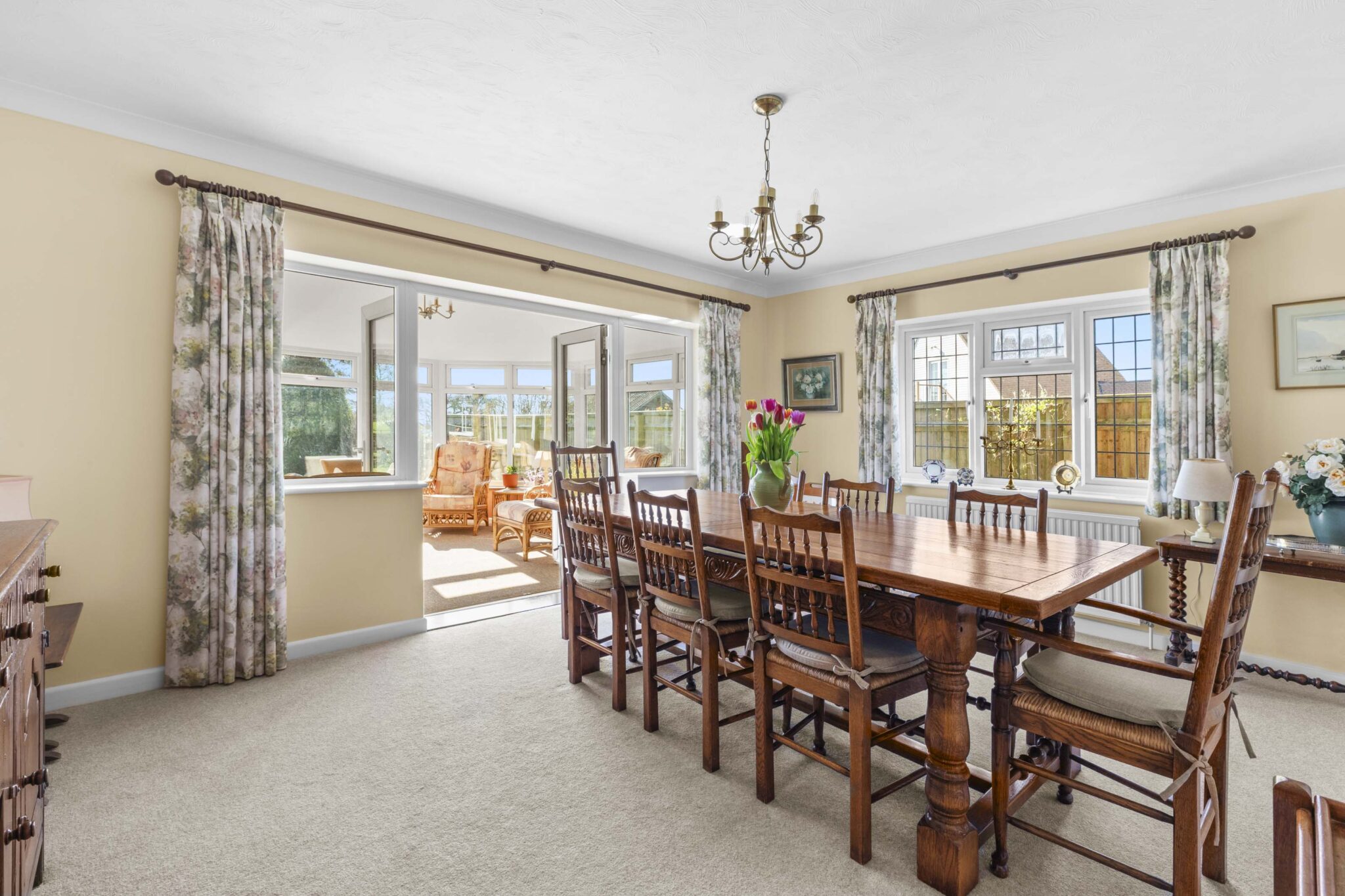 Occupying a plot of approximately 0.25 acres, this five-bedroom detached home offers around 2,200 sq. ft. of versatile accommodation and enjoys far-reaching countryside views to the rear, backing directly onto paddock and open fields.