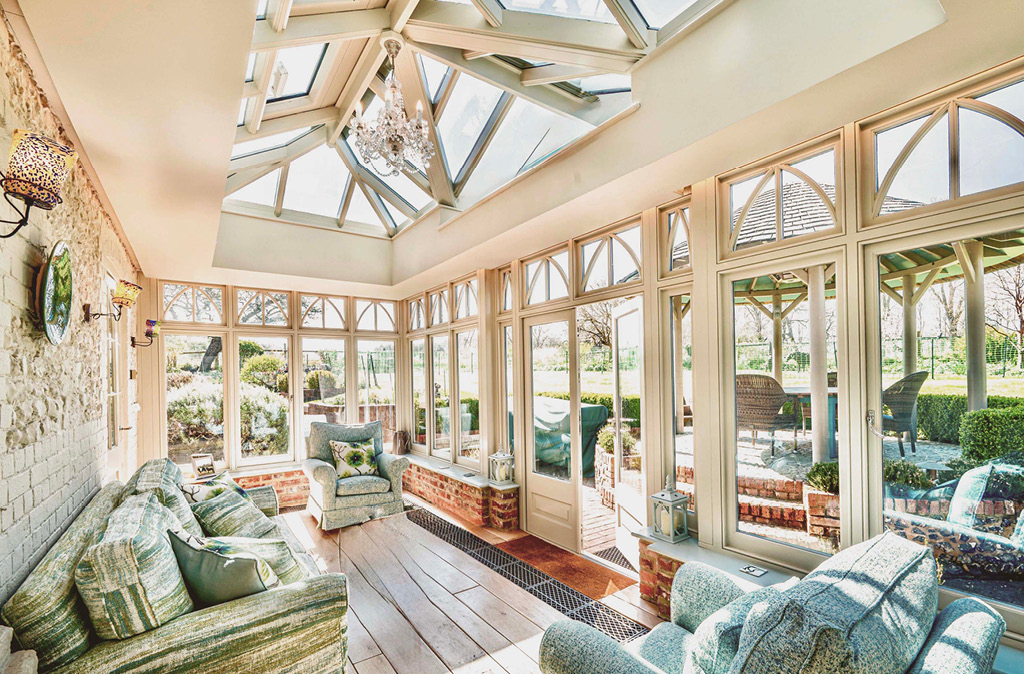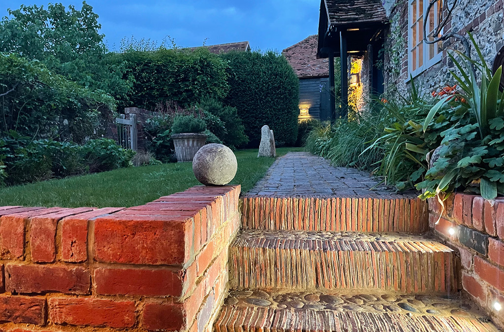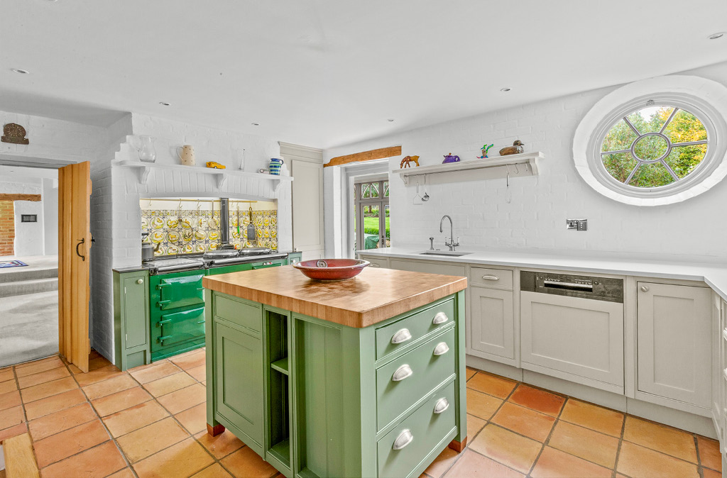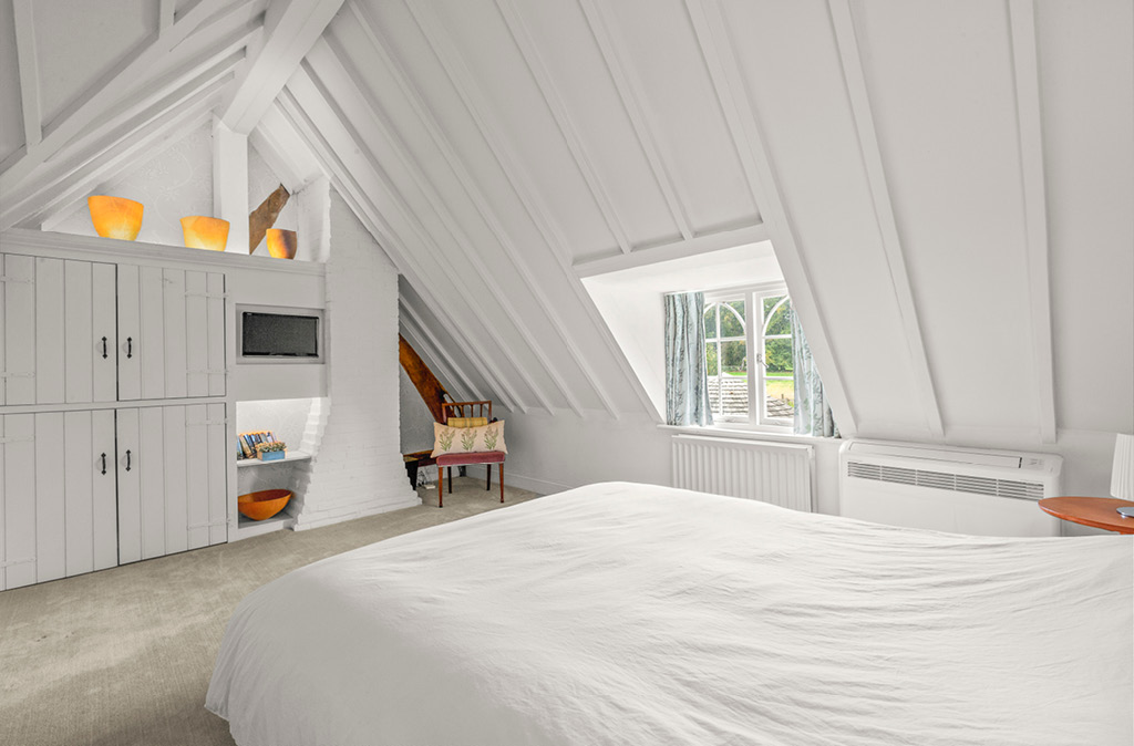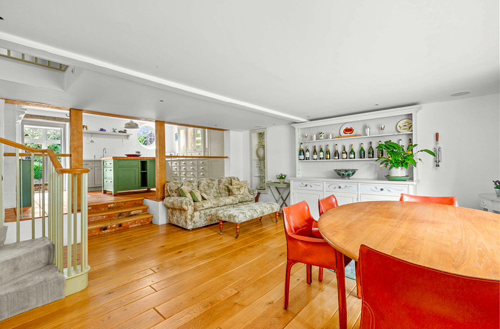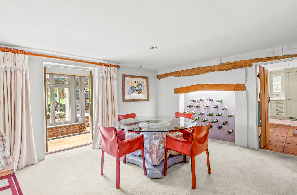 The principal residence, the Grade II listed Farm House, offers over 3,100 sq ft of elegant accommodation including four bedrooms, three bathrooms, three reception rooms, a bespoke kitchen with Aga, and a spectacular orangery. Features include exposed beams, open fireplaces, an illuminated ancient well beneath walk-on glass, and far-reaching countryside views.