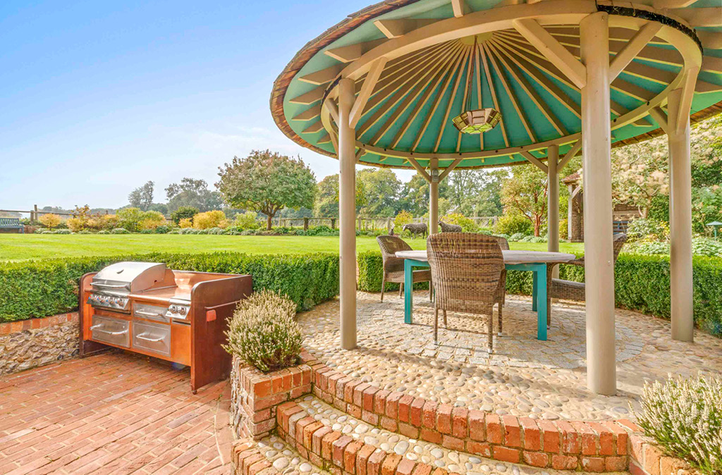 Outside, the gated gravel driveway leads to a beautifully landscaped courtyard and garden, featuring stone terraces, mature planting, and a bespoke Crown Pavilions gazebo for outdoor dining. Modern infrastructure includes superfast fibre broadband, advanced lighting and security systems, underfloor heating, and Ethernet wiring throughout. Planning permissions, listed building consents, and a full technical and legal Sellers Pack are available, including a recent structural survey.