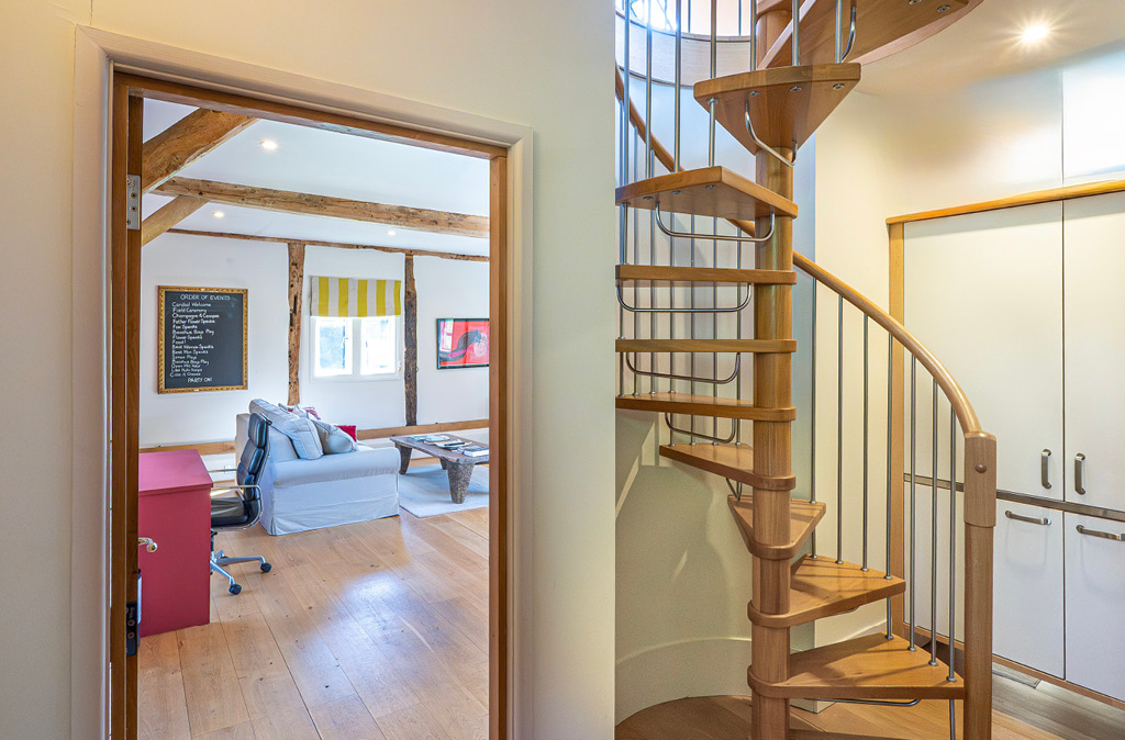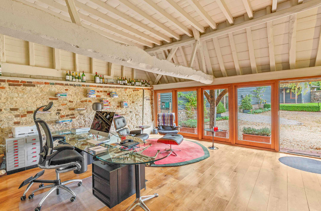 The courtyard is home to a stunning array of ancillary buildings, including the 16th-century Home Barn, now a flexible live/work space with a mezzanine, kitchenette and shower room. The Coach House offers a separate living space with two bedrooms and spiral stair, while the Home Office provides a stylish, underfloor-heated workspace with breathtaking views.