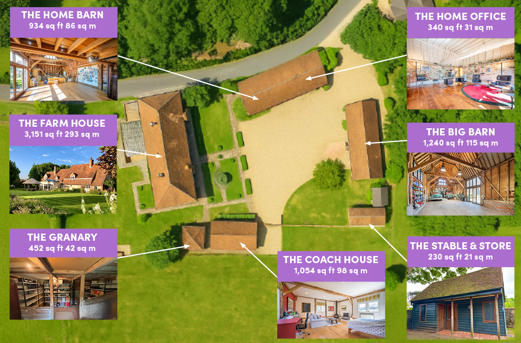 The Big Barn (1,240 sq ft) is ideal for a car collection or entertaining space and had planning for a swimming pool. The Granary, Stable, and Store offer further opportunities for creative or lifestyle use, including animal housing, storage, or studios.