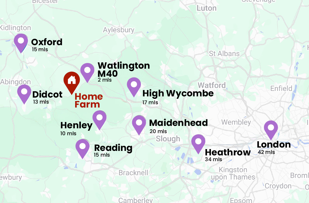 Just 5 miles from the M40 (J6) and with easy access to Oxford, Henley, London and top-rated schools, Home Farm is a rare chance to own a country estate that is as functional as it is beautiful.