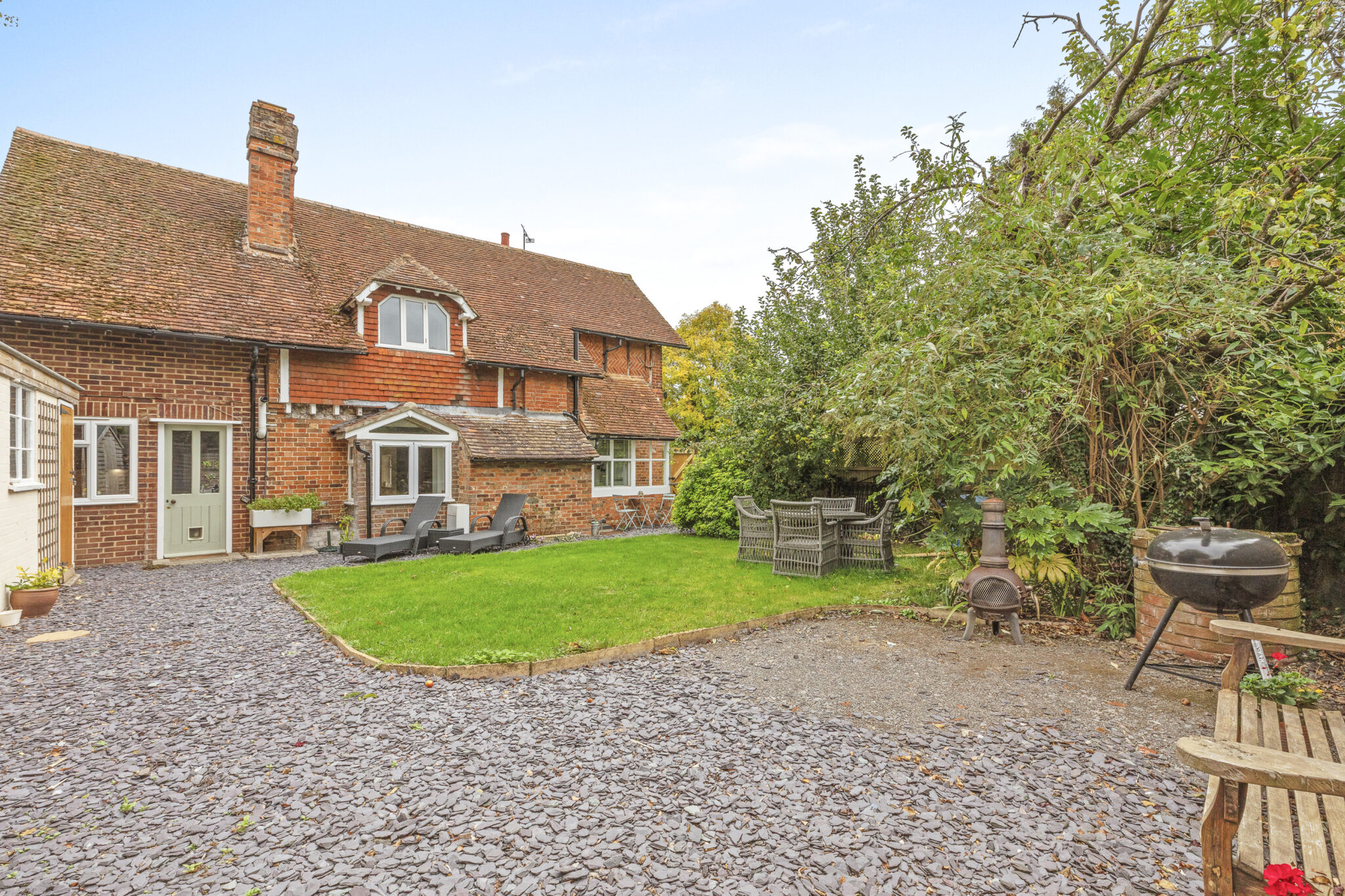 Beautiful detached Chiltern village home with period charm built in 1972 by Country Craftsman Ltd. Exposed timbers, inglenook fireplace, modern amenities, 3 bedrooms, gated parking, and lovely garden.
