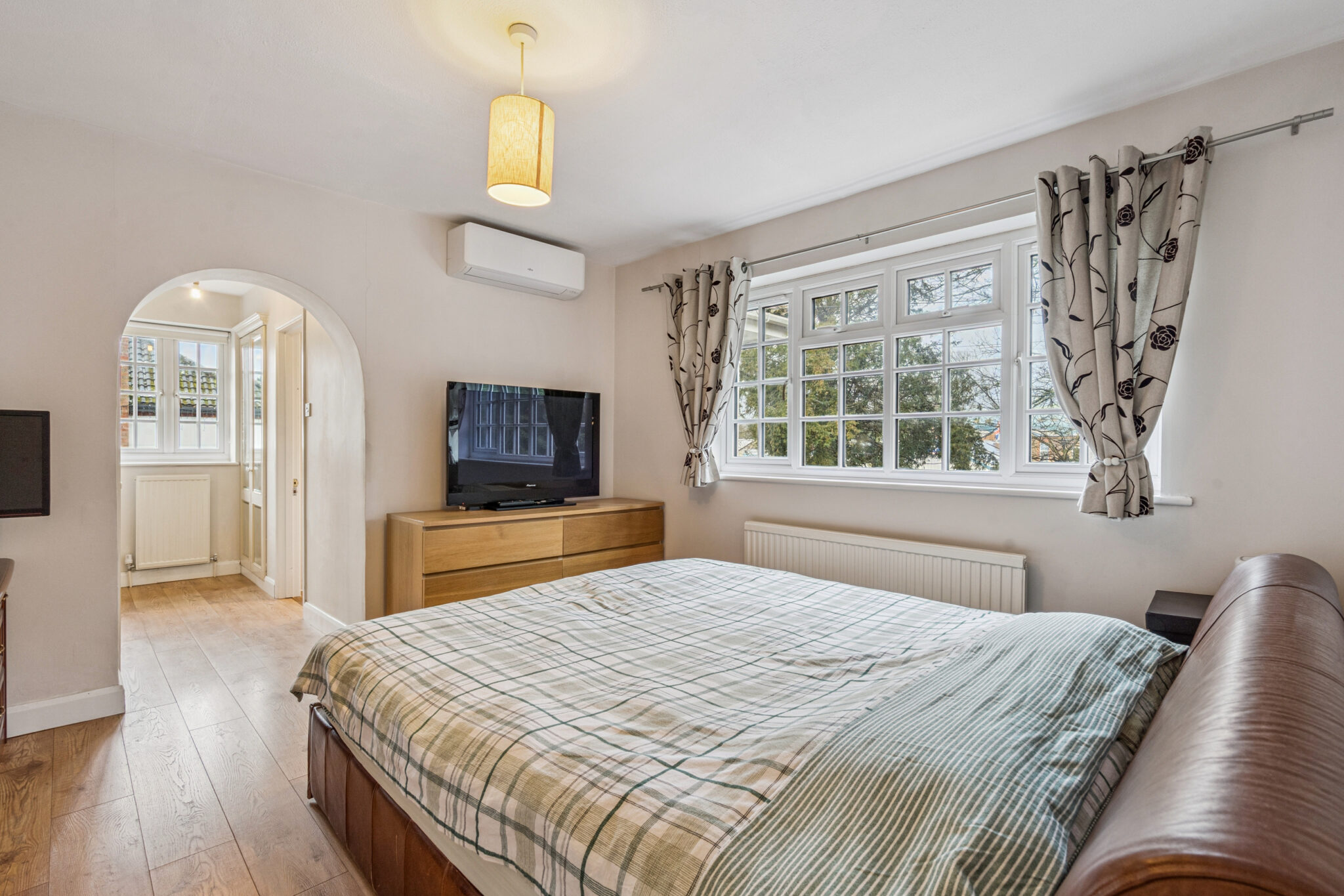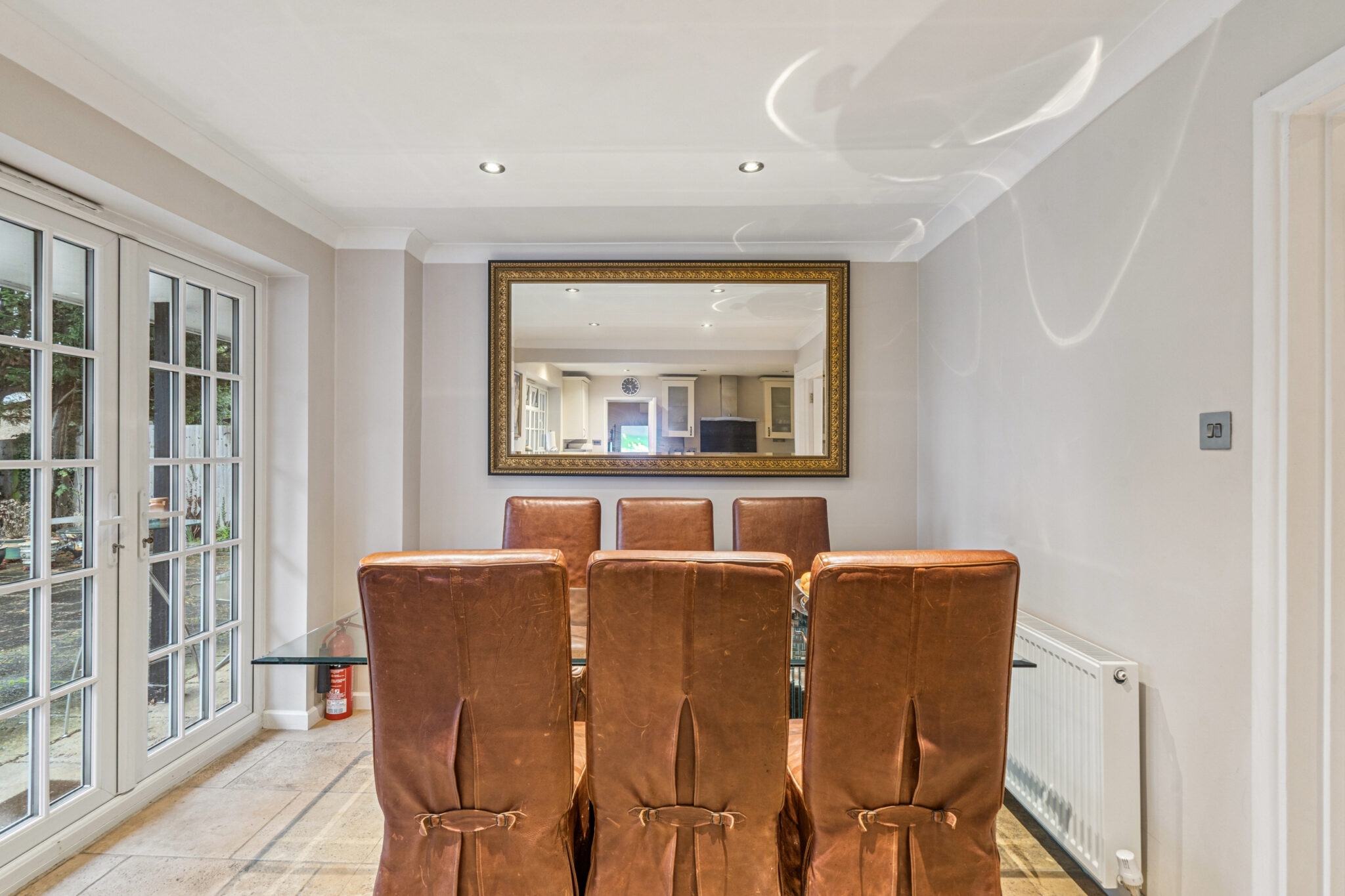 The first floor is seamlessly connected by the light and spacious galleried landing. All five bedrooms are doubles with the main boasting it’s own dressing room and en-suite. There is a further bathroom and separate shower room. The rear garden is both a good size and private, fully paved for low maintenance and to best enjoy the beautiful and large heated swimming pool. Further features and benefits are air conditioning, underfloor heating, gas central heating and a large shingle driveway providing secure parking for several vehicles.