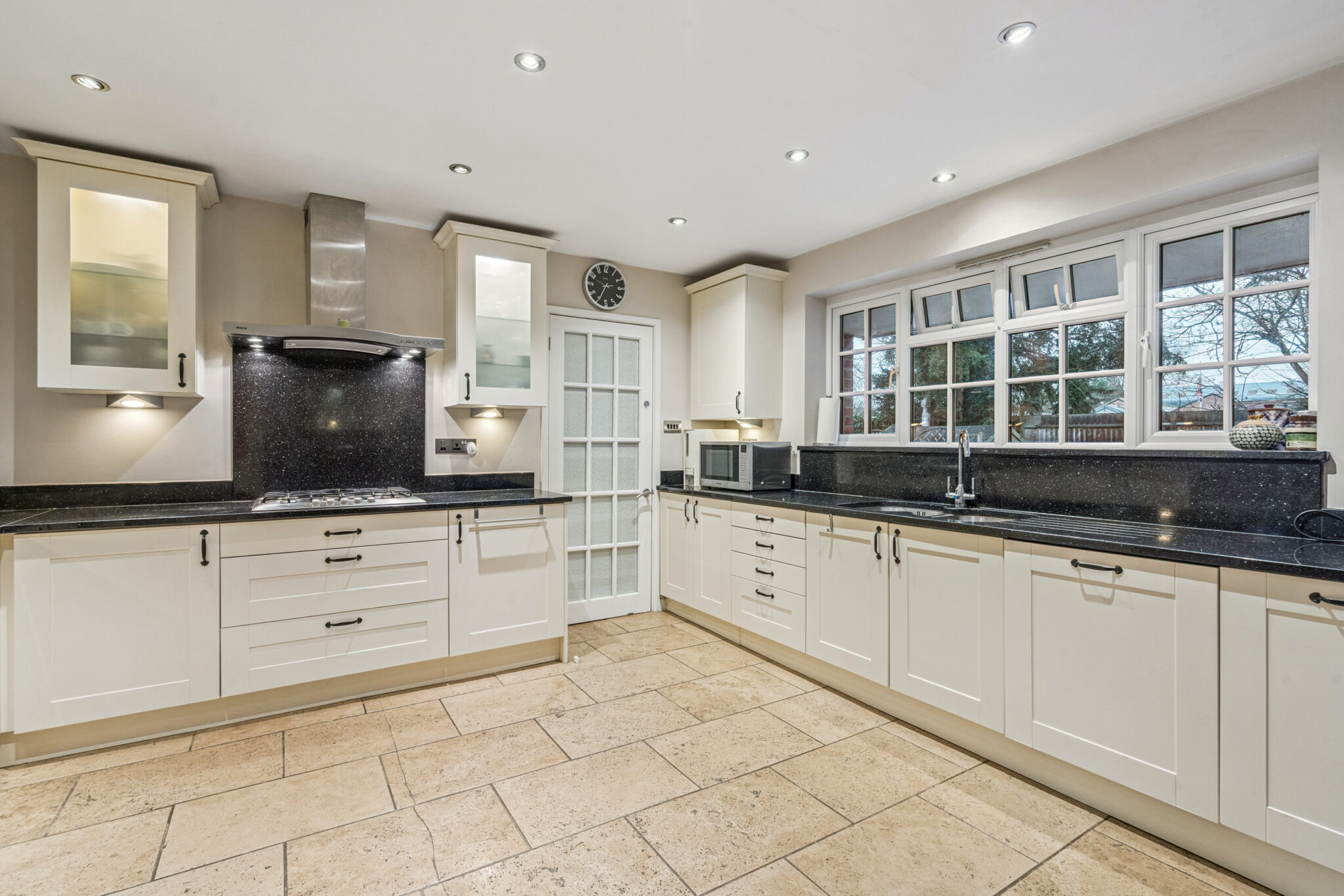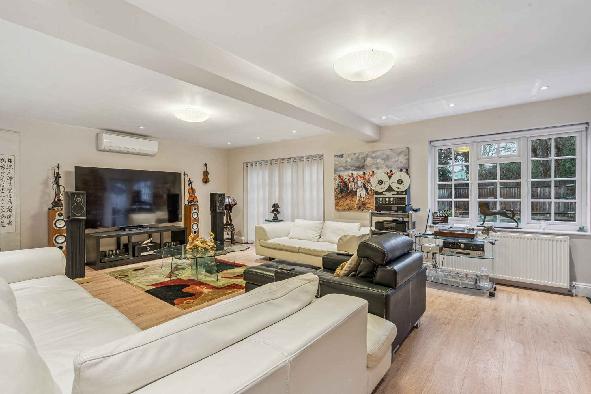 An open reception hall greets you with the large home office to one side and the formal living room to the other, glazed double doors open to a superb and spacious kitchen/dining room that spans the back of the house opening on the private garden beyond. A large family room adds to an already impressive layout which is complimented by a useful utility room and cloakroom.