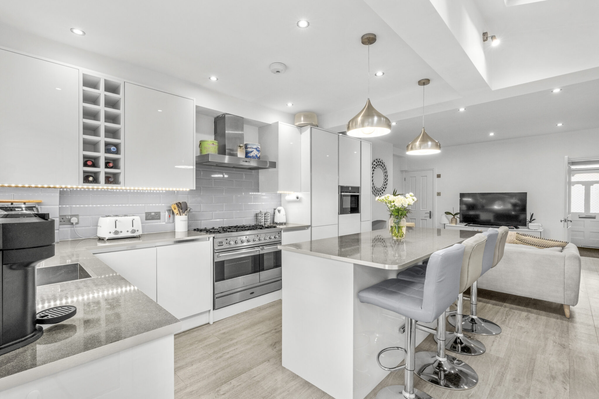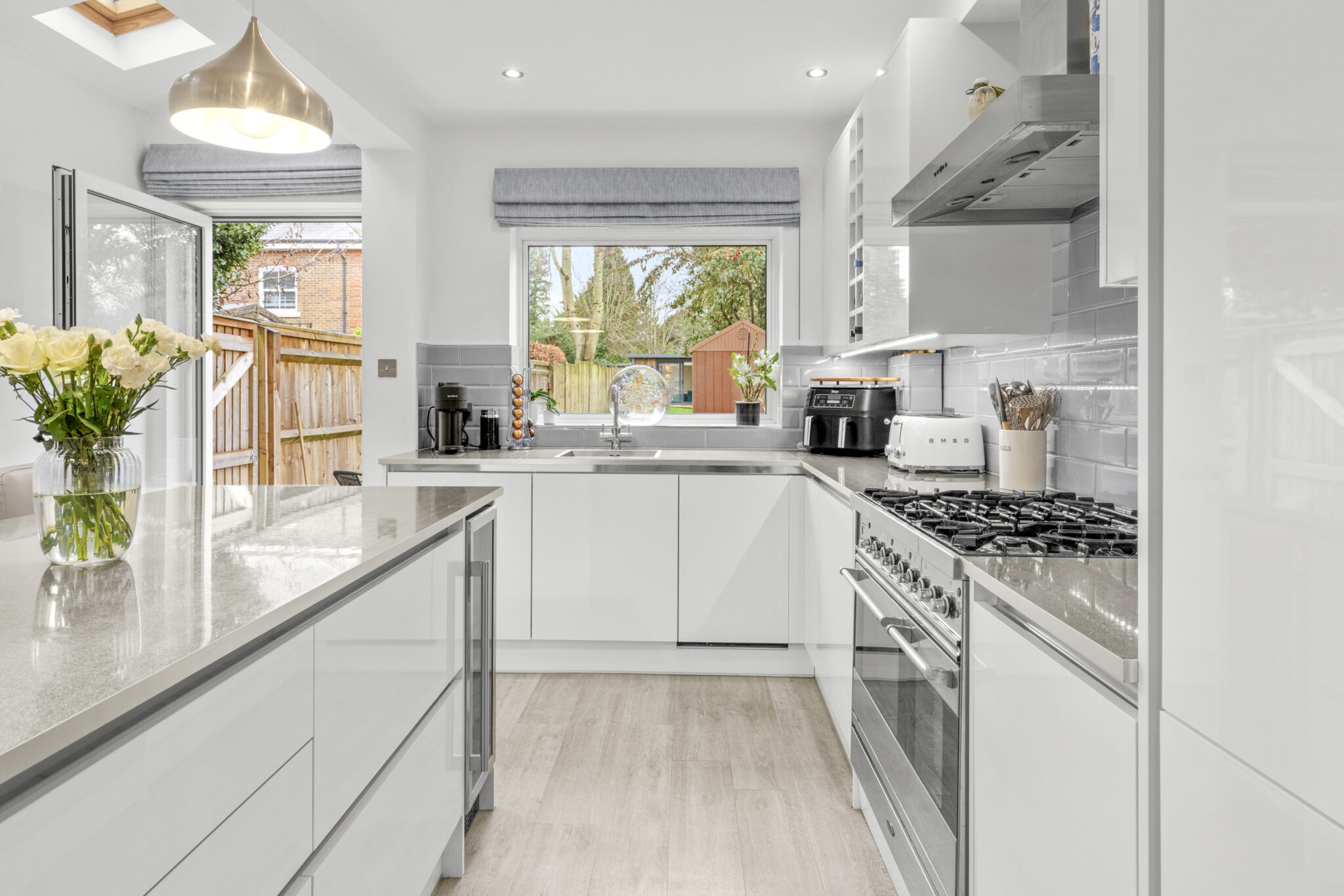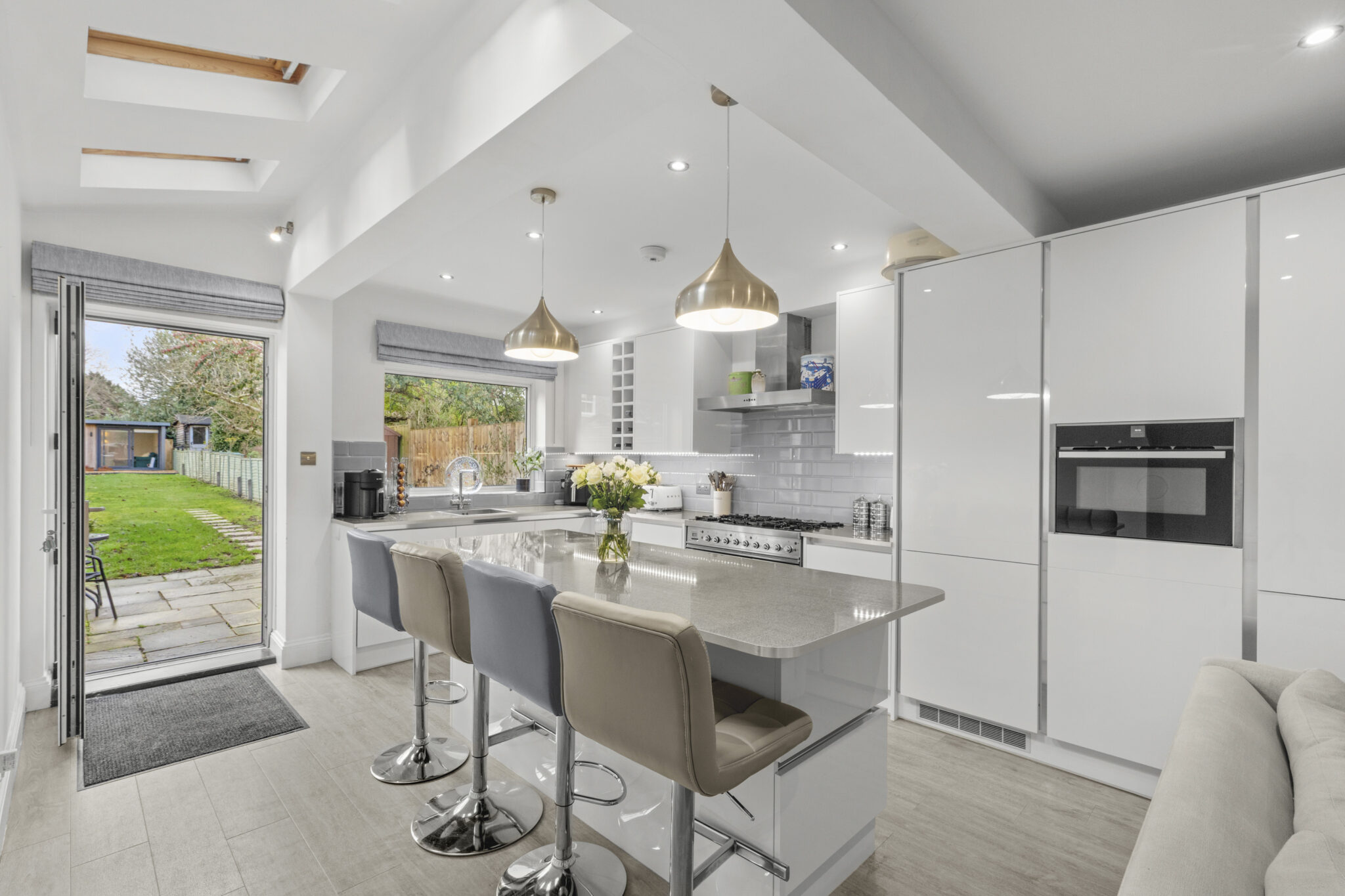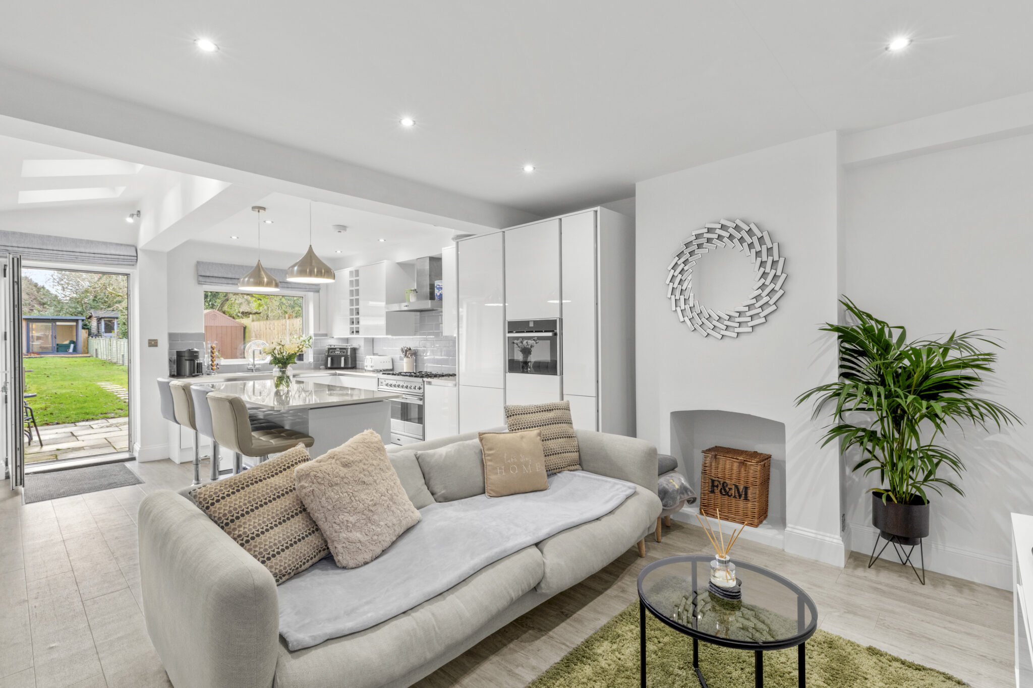 The heart of the home is the impressive open-plan kitchen, dining and family space, designed for everyday living and entertaining. Flooded with natural light from Velux windows and glazed doors to the garden, the kitchen is modern and well equipped. A stylish cloakroom completes the ground floor.
