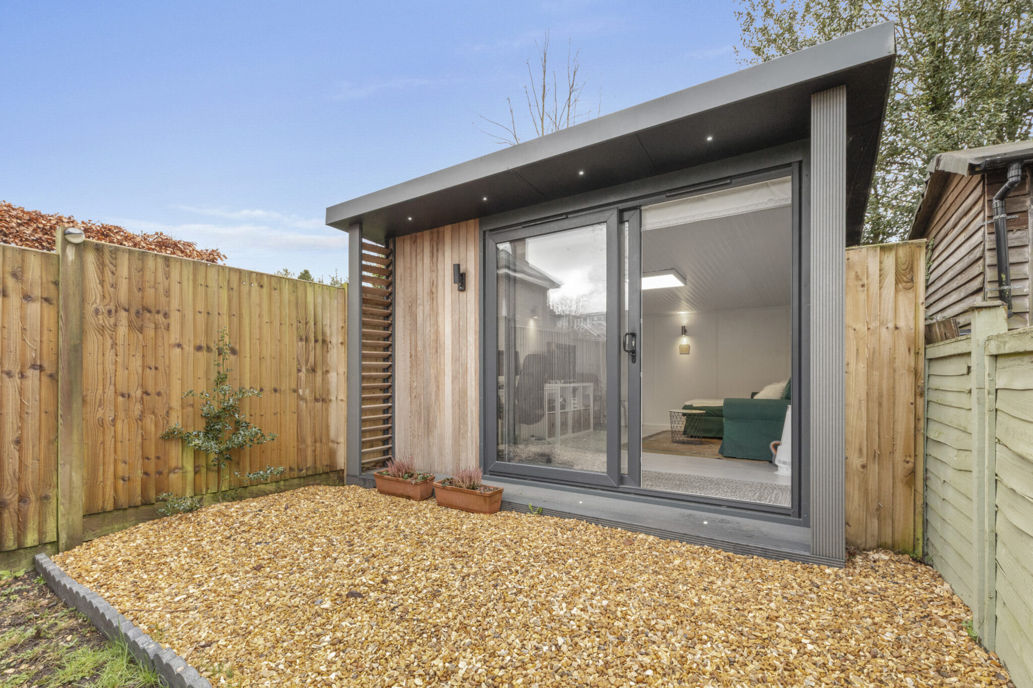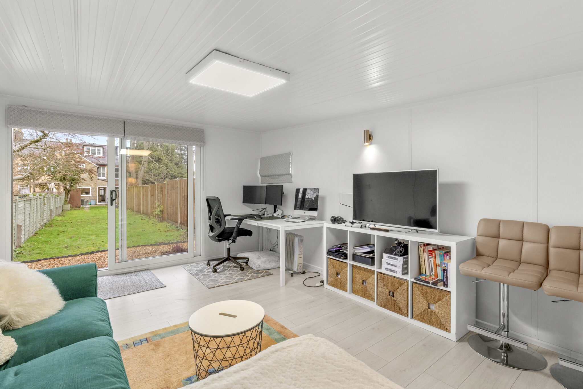 Outside, the south-west facing garden extends to approximately 138 ft, mainly laid to lawn with a large patio. A substantial bespoke garden room at the rear provides flexible space for home working, leisure or gym use.