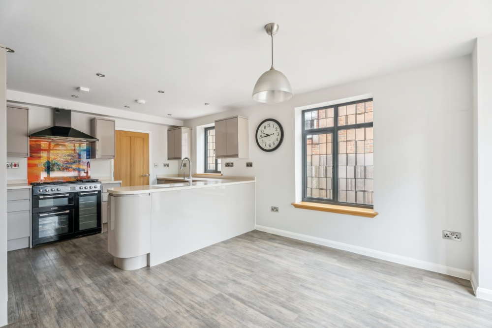The accommodation extends to approximately 2,103 sq ft. A welcoming entrance hall leads into a spacious kitchen/diner, which in turn connects to a practical utility room. On the lower ground floor, there is a cloakroom and a large reception room with sliding doors opening onto the rear garden.
