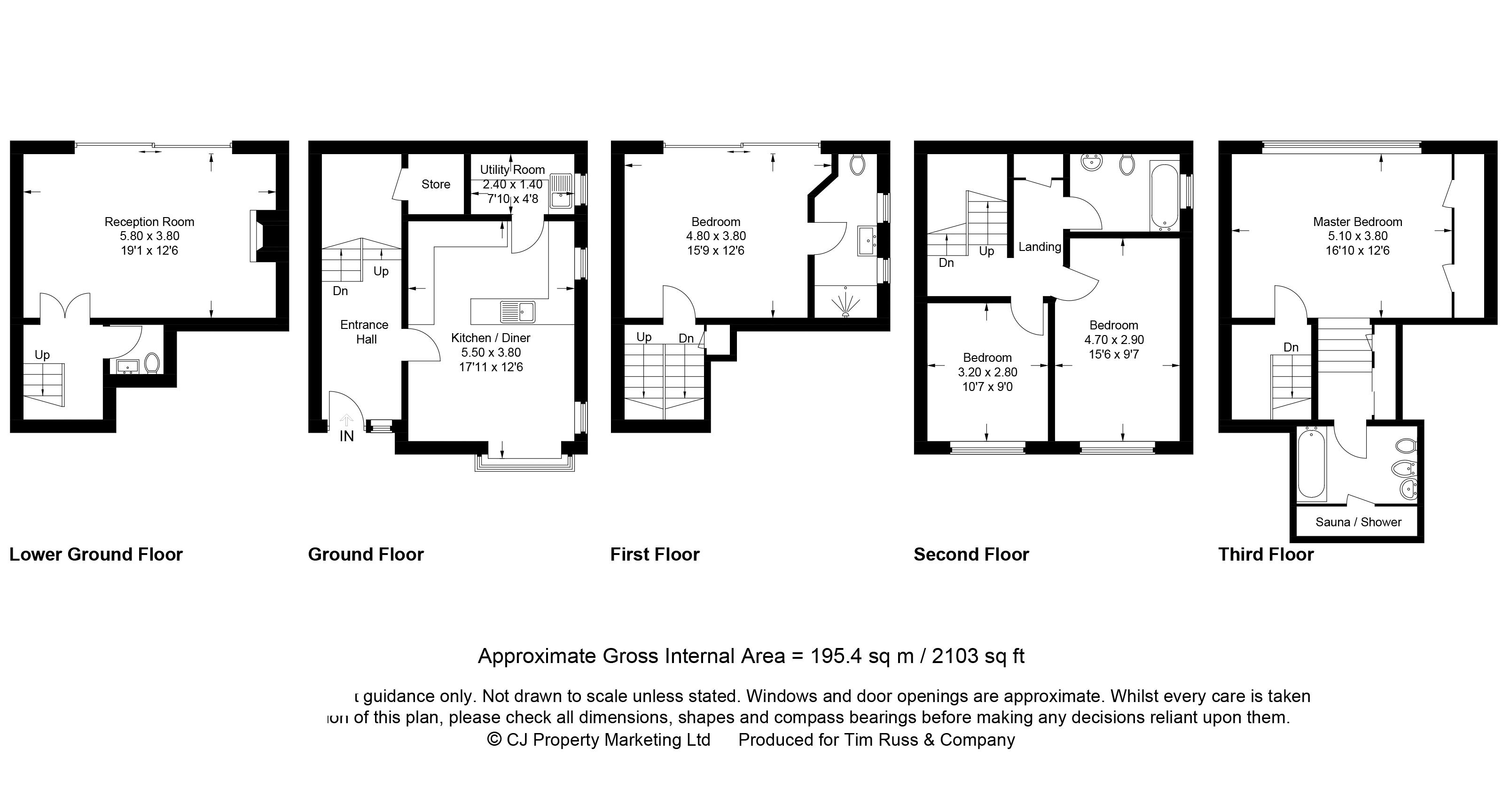 The accommodation extends to approximately 2,103 sq ft. A welcoming entrance hall leads into a spacious kitchen/diner, which in turn connects to a practical utility room. On the lower ground floor, there is a cloakroom and a large reception room with sliding doors opening onto the rear garden.