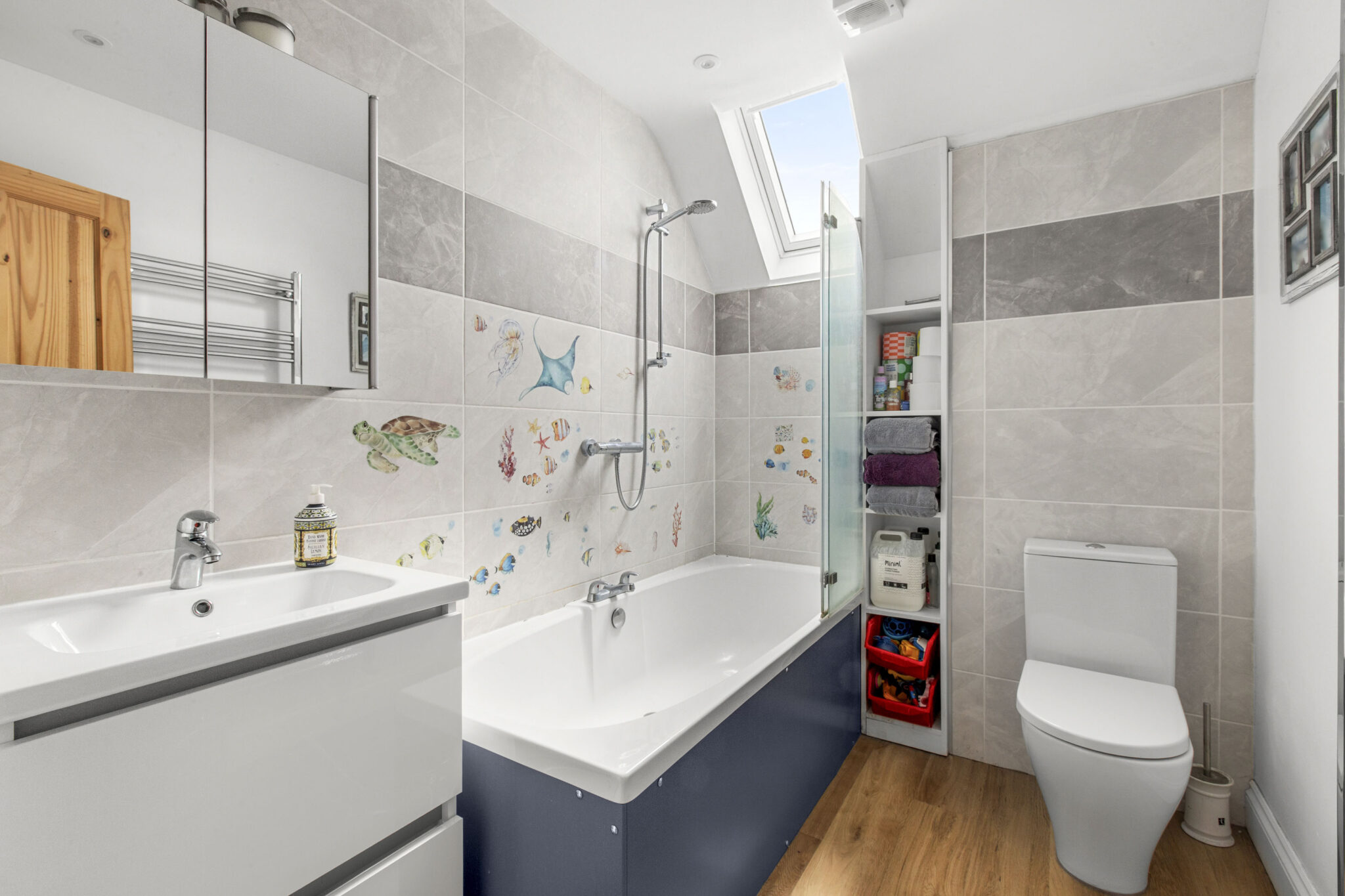 The home is heated by an energy-efficient air-source heat pump with underfloor heating on the ground floor.