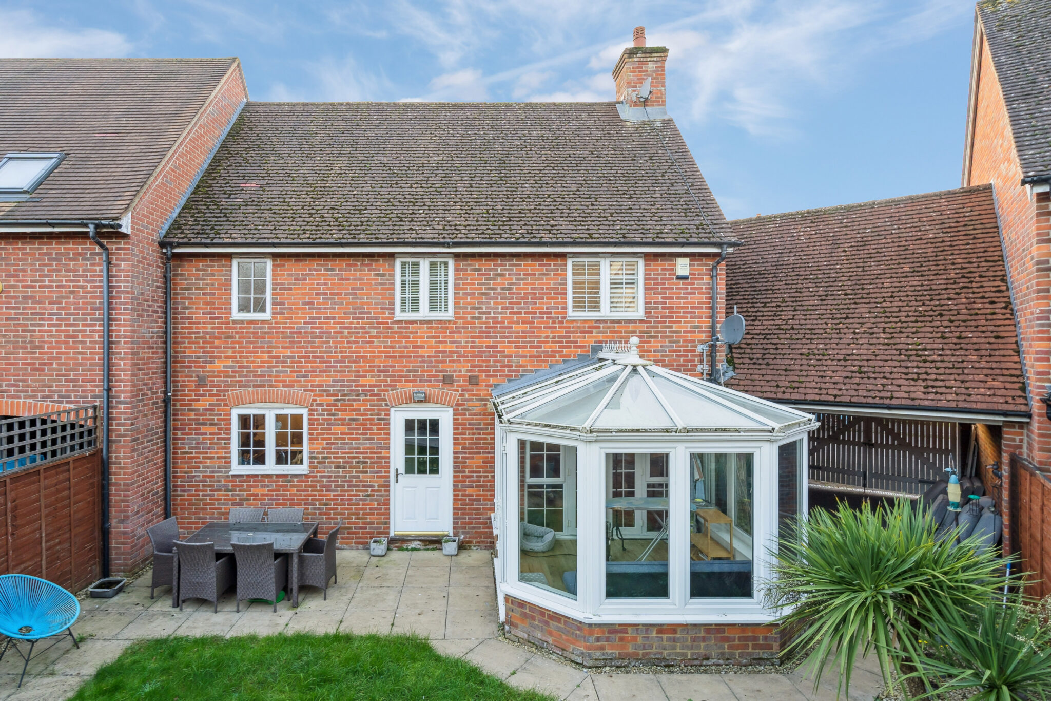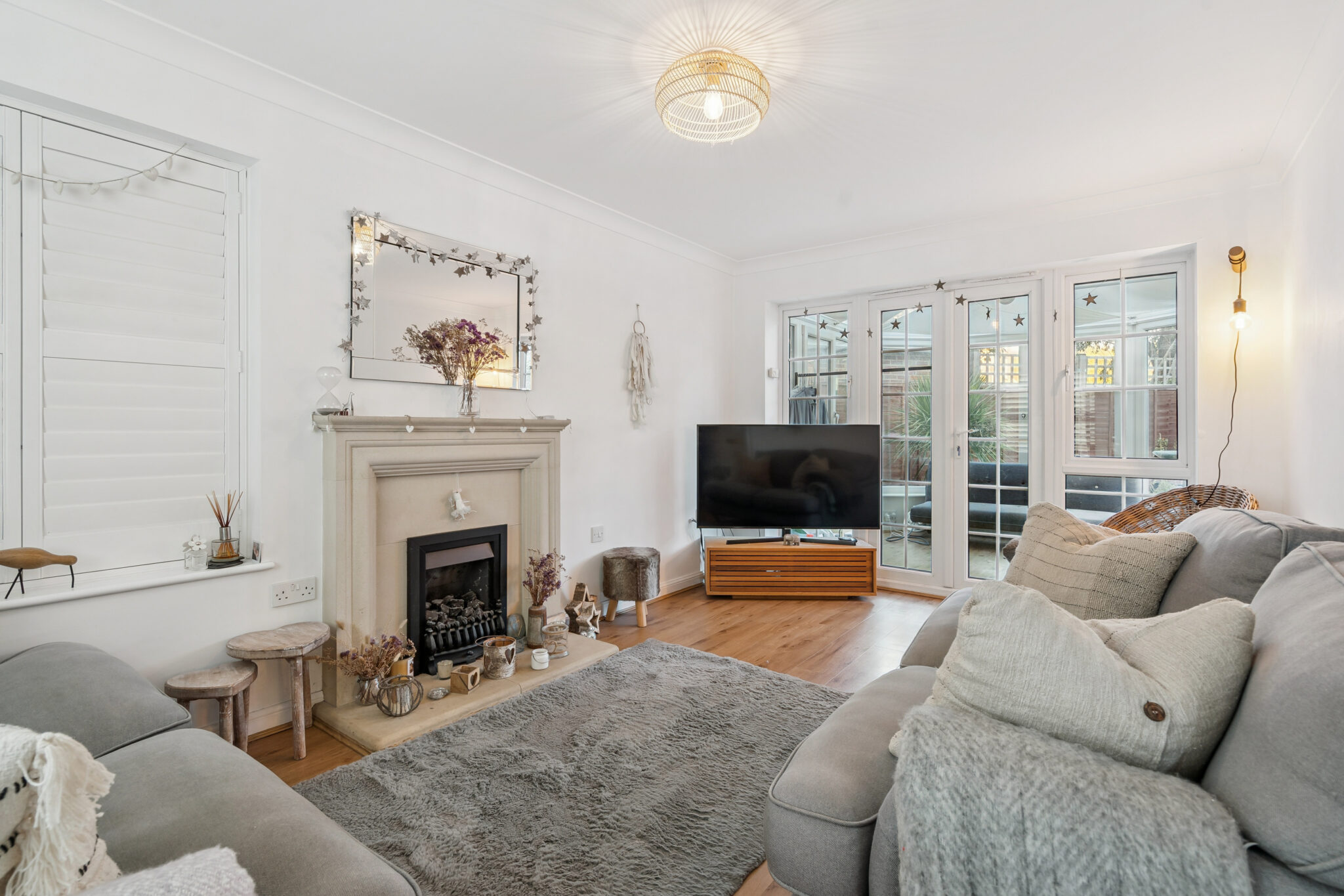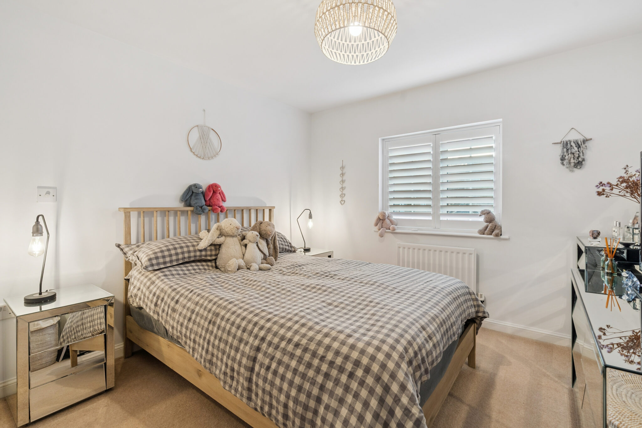 Upstairs, you’ll find three good size bedrooms, including a main bedroom with en suite shower and a built-in wardrobe. There is also a family bathroom. To the front, there’s a communal play area, and the property is just a short stroll from the amenities of Wooburn Green.