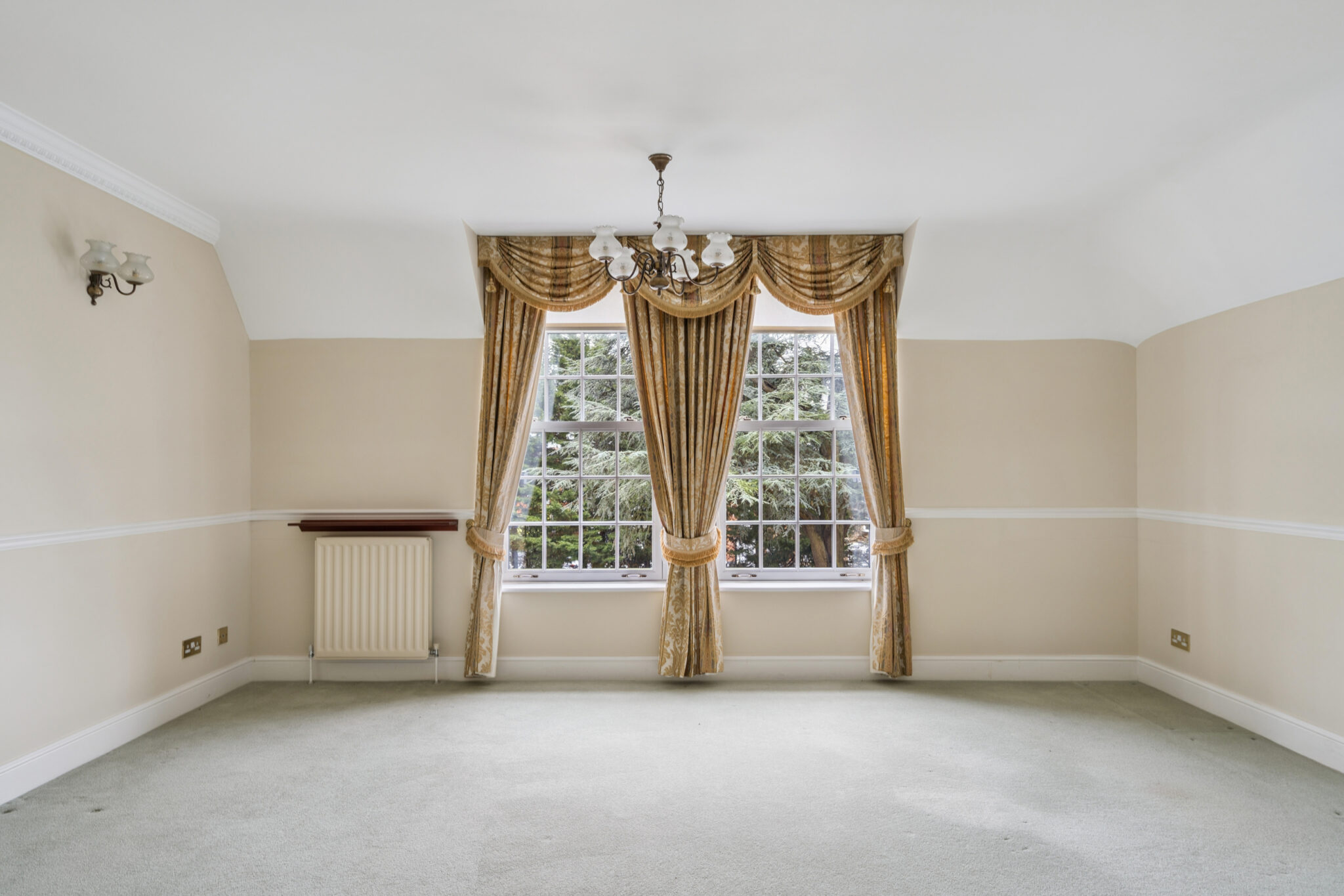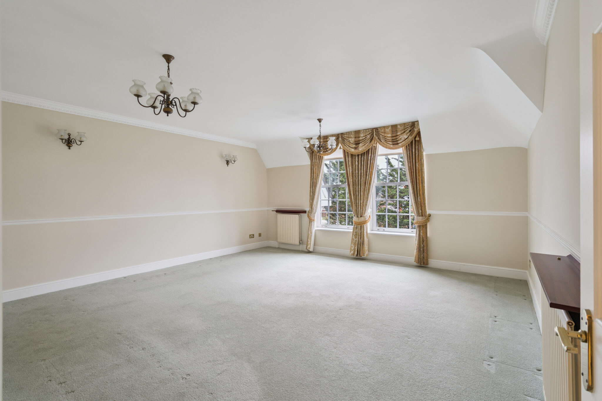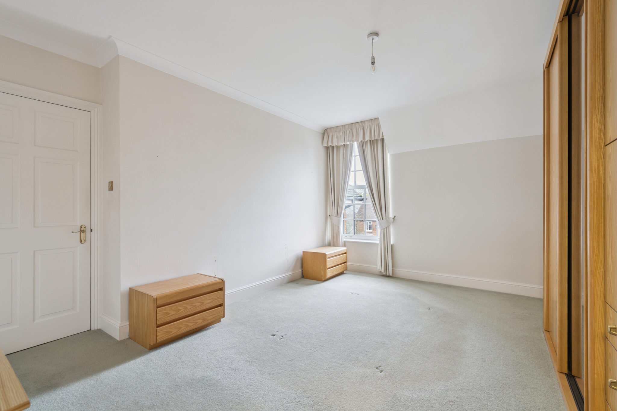 The spacious and well maintained communal entrance hall provides access to the second floor via a communal lift and stairs. This well designed and spacious apartment features a large central entrance hall allowing access to all rooms. The impressive 17ft sitting room enjoys a southerly aspect overlooking the front of the development. Adjacent, the kitchen is fitted with a range of ‘Pogenpohl’ wall and base units with space for a breakfast table and chairs. The main bedroom with fitted wardrobe has a superb en-suite bathroom. The second bedroom is also of a good size served by the modern family bathroom. The extra large loft space with electricity and skylights, is ideal for a hobby room/ office/ extra storage.