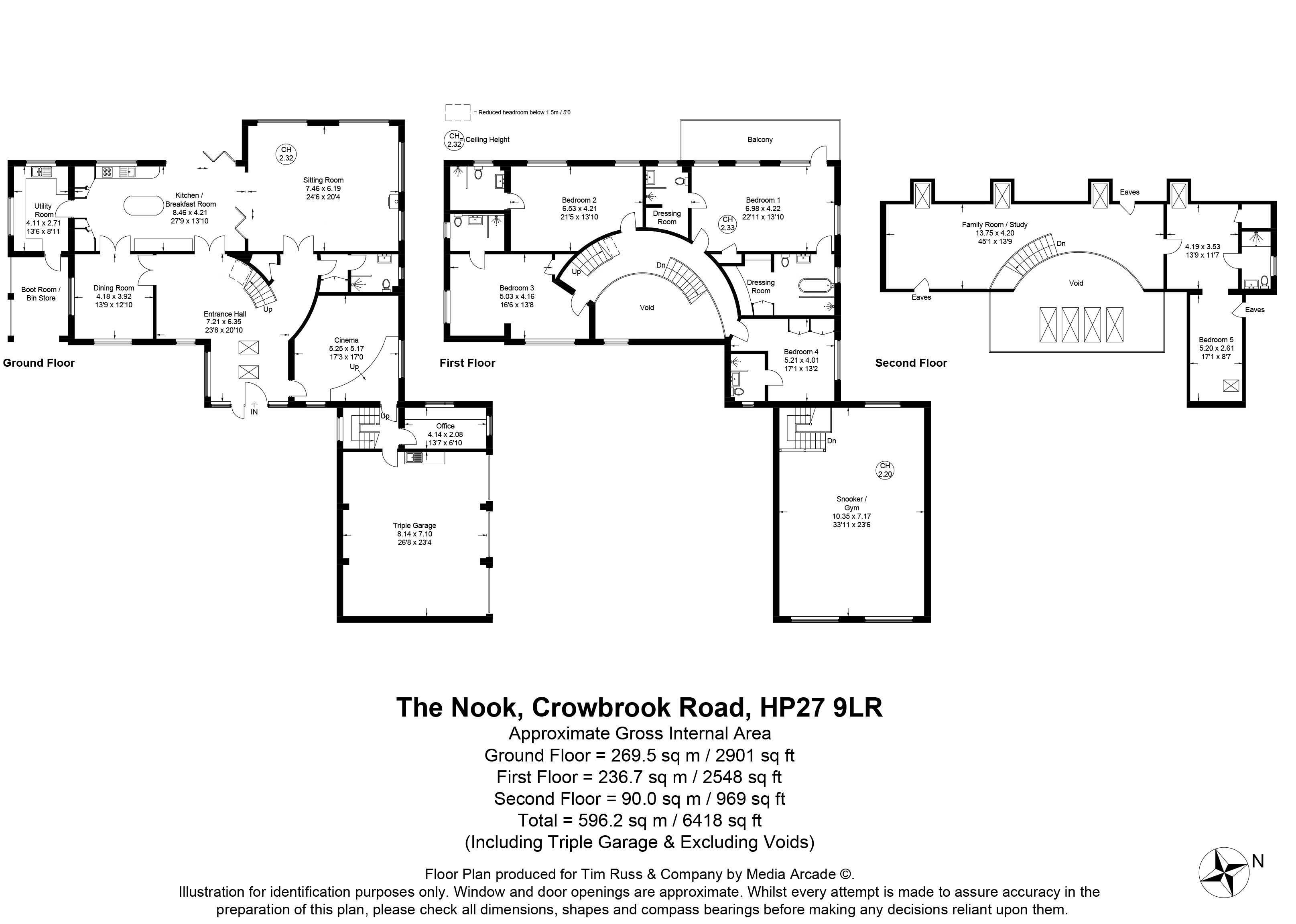 The stunning curved landing is the centre pieces with its amazing curved glass; leading all the bedrooms and up the next floor. The main bedroom suite has doors out to a sun balcony overlooking the garden, plus ‘his and hers’ ensuite bathrooms. There are three further bedrooms on this floor, all of which are ensuite. The second floor has a spectacular open plan study or family area, plus a further large bedroom suite.