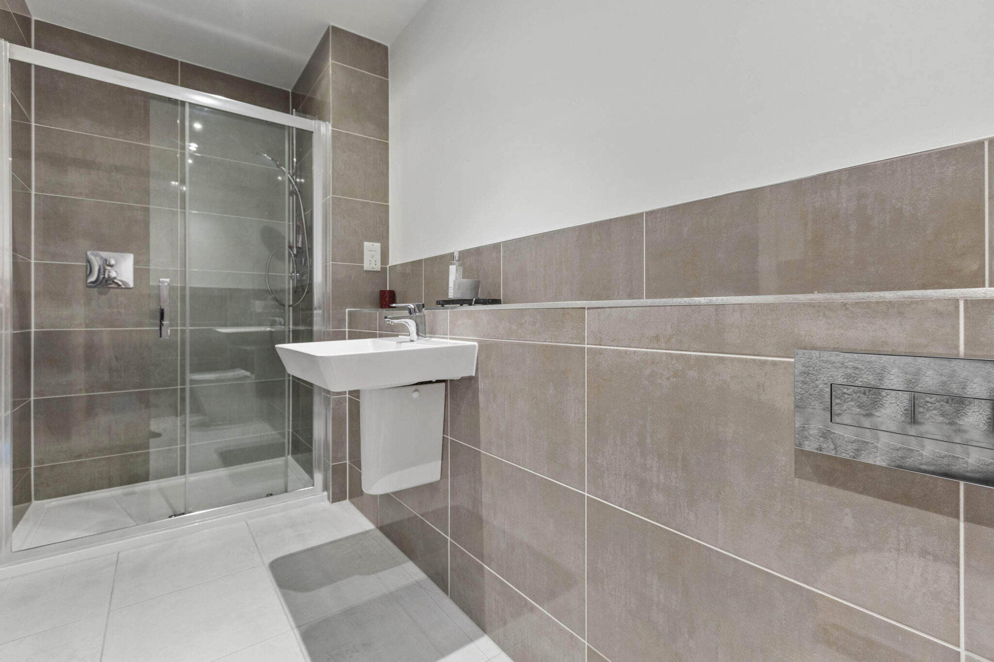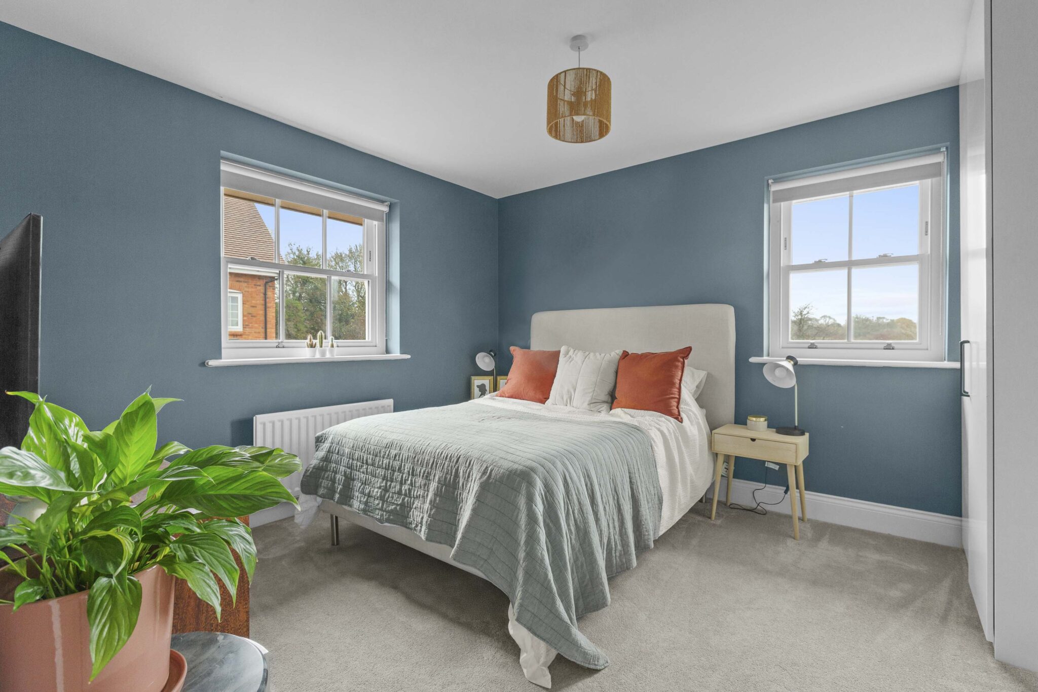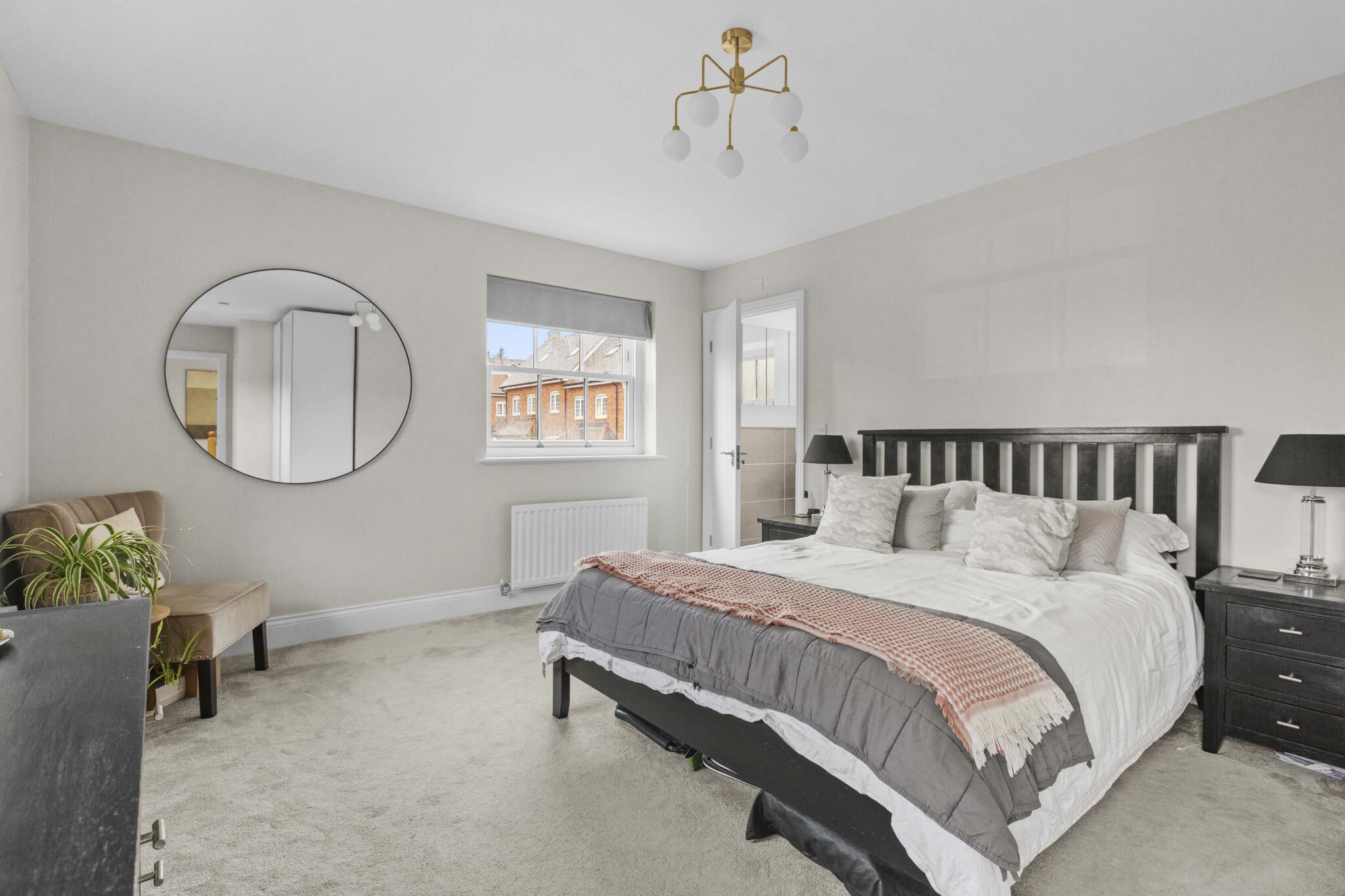 The sitting room is generous in size and benefits from a double aspect, making it feel airy and inviting. There is a large storage cupboard to help keep things tidy, and the same beautiful flooring continues here. Upstairs, the principal bedroom is a real treat. It’s a luxury size, with space for fitted cupboards for plenty of storage and a generous ensuite for added privacy. The guest bedroom also has its own ensuite shower room, while the third double bedroom is served by a beautifully appointed family bathroom.