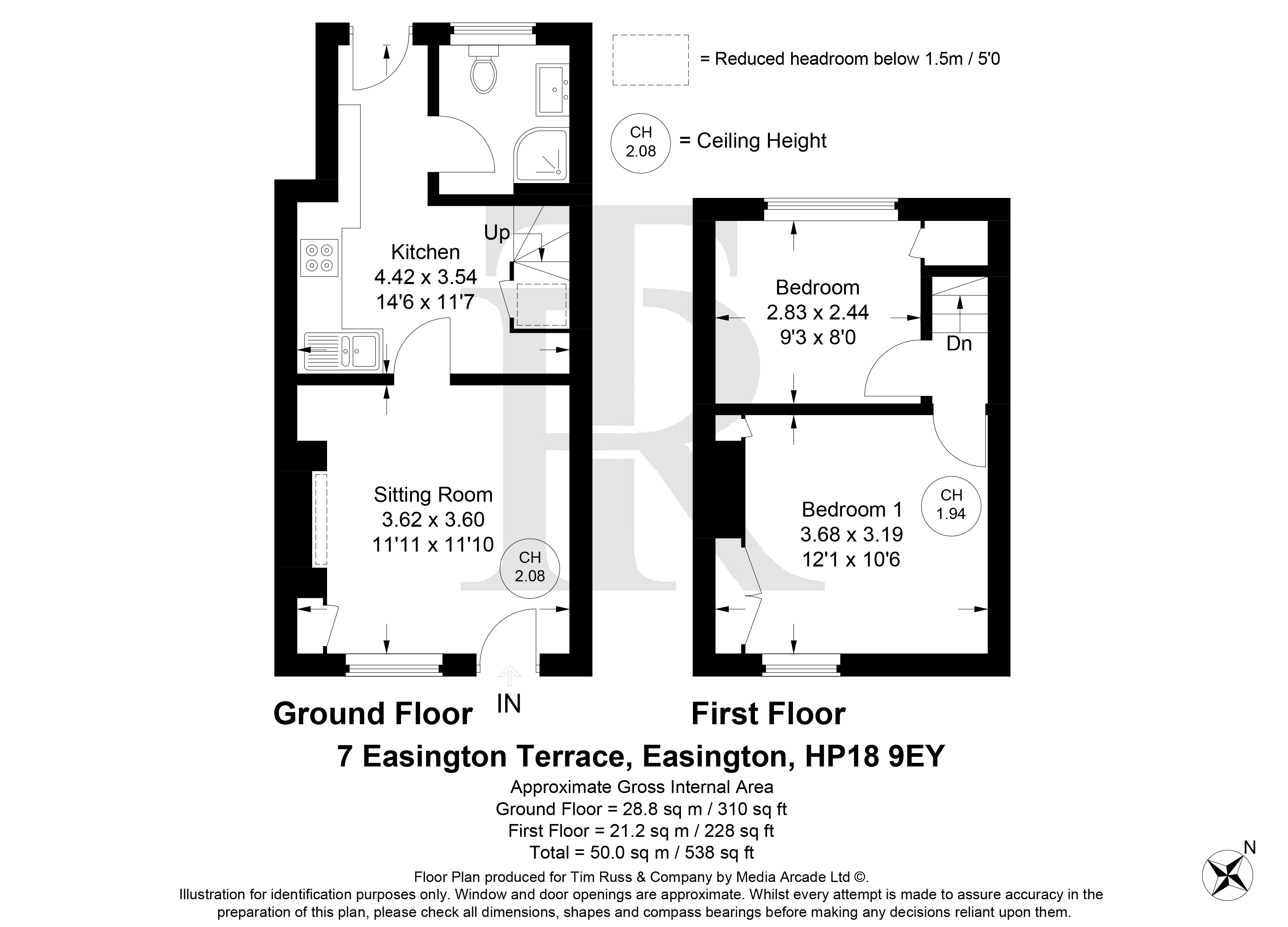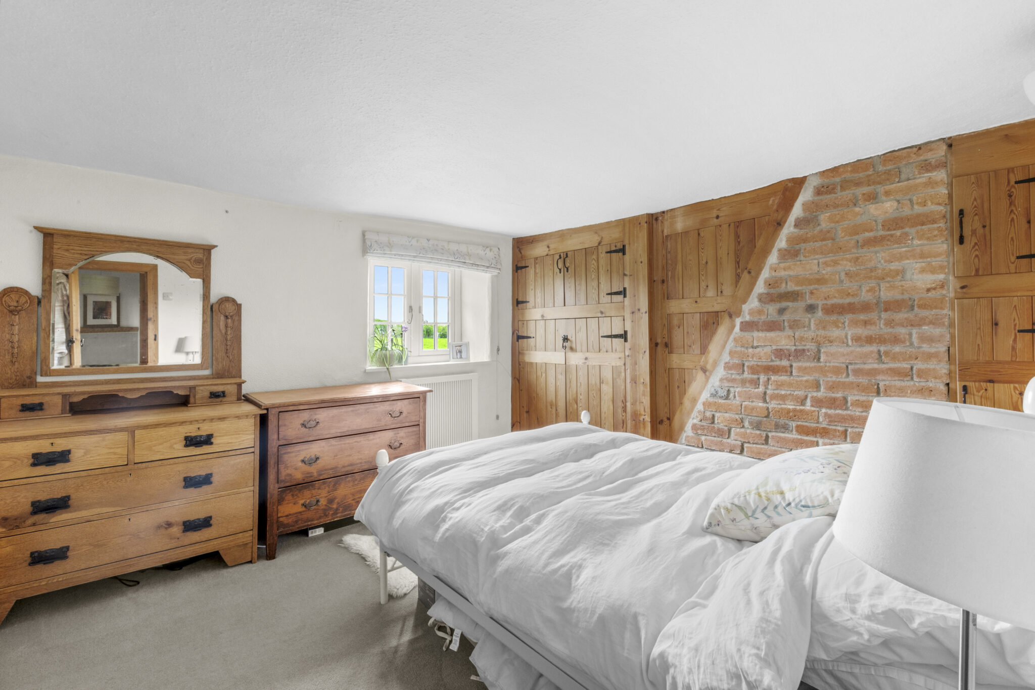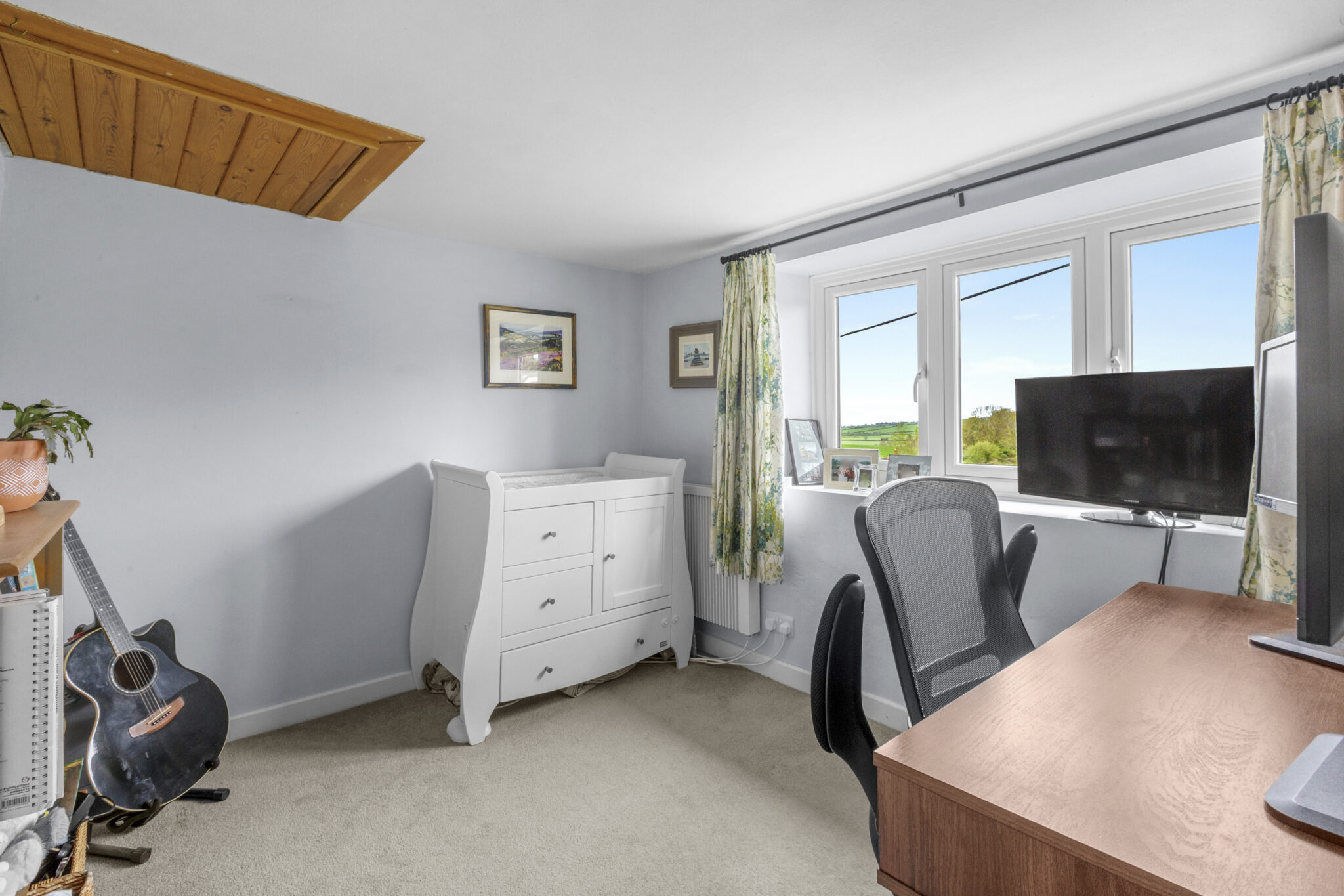 The ground floor also benefits from a recently fitted shower room and W.C., finished to a modern standard. To the first floor are two well-proportioned bedrooms, with the principal bedroom offering a range of fitted wardrobes and attractive views over surrounding countryside.
