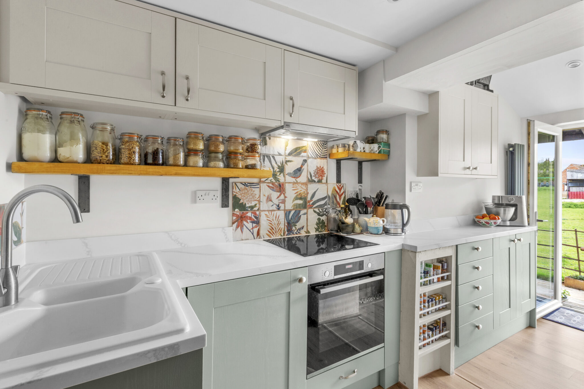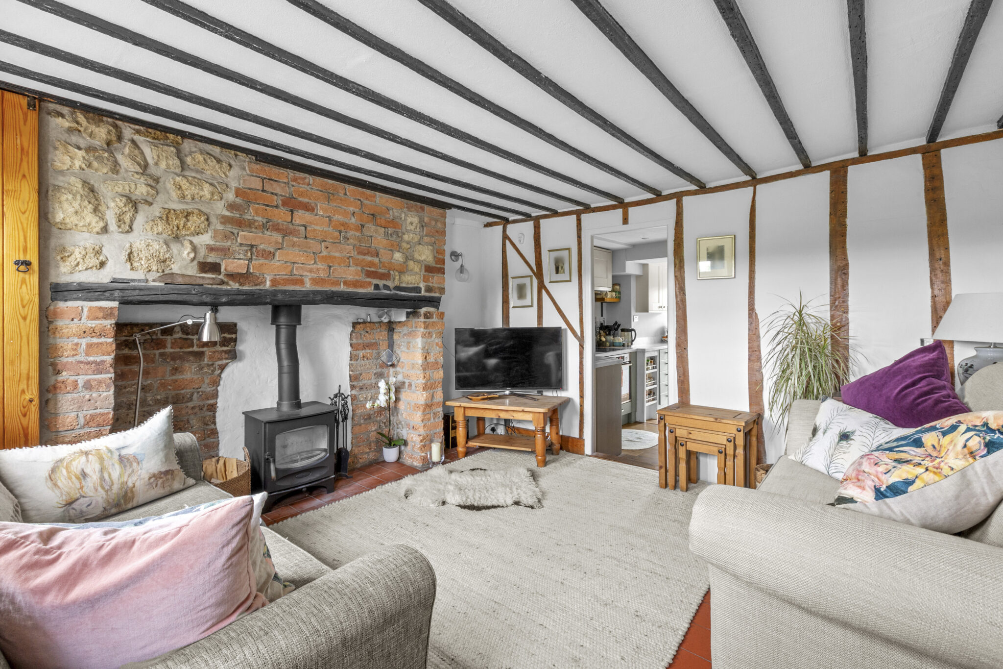 The property has been tastefully upgraded throughout and features a welcoming sitting room with a wood-burning stove, creating a cosy and inviting living space. The kitchen has been intelligently designed to maximise storage and functionality, providing a practical yet stylish area for everyday use.