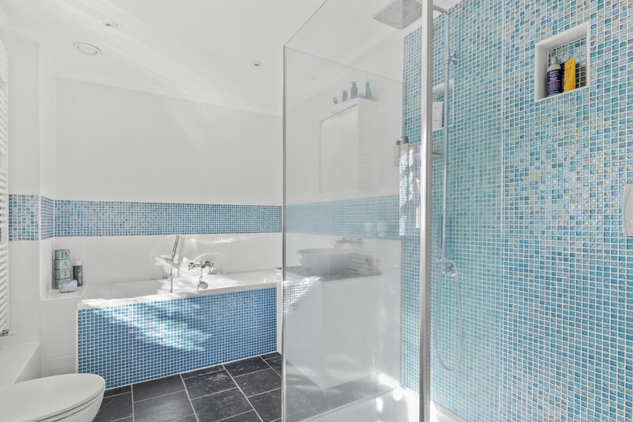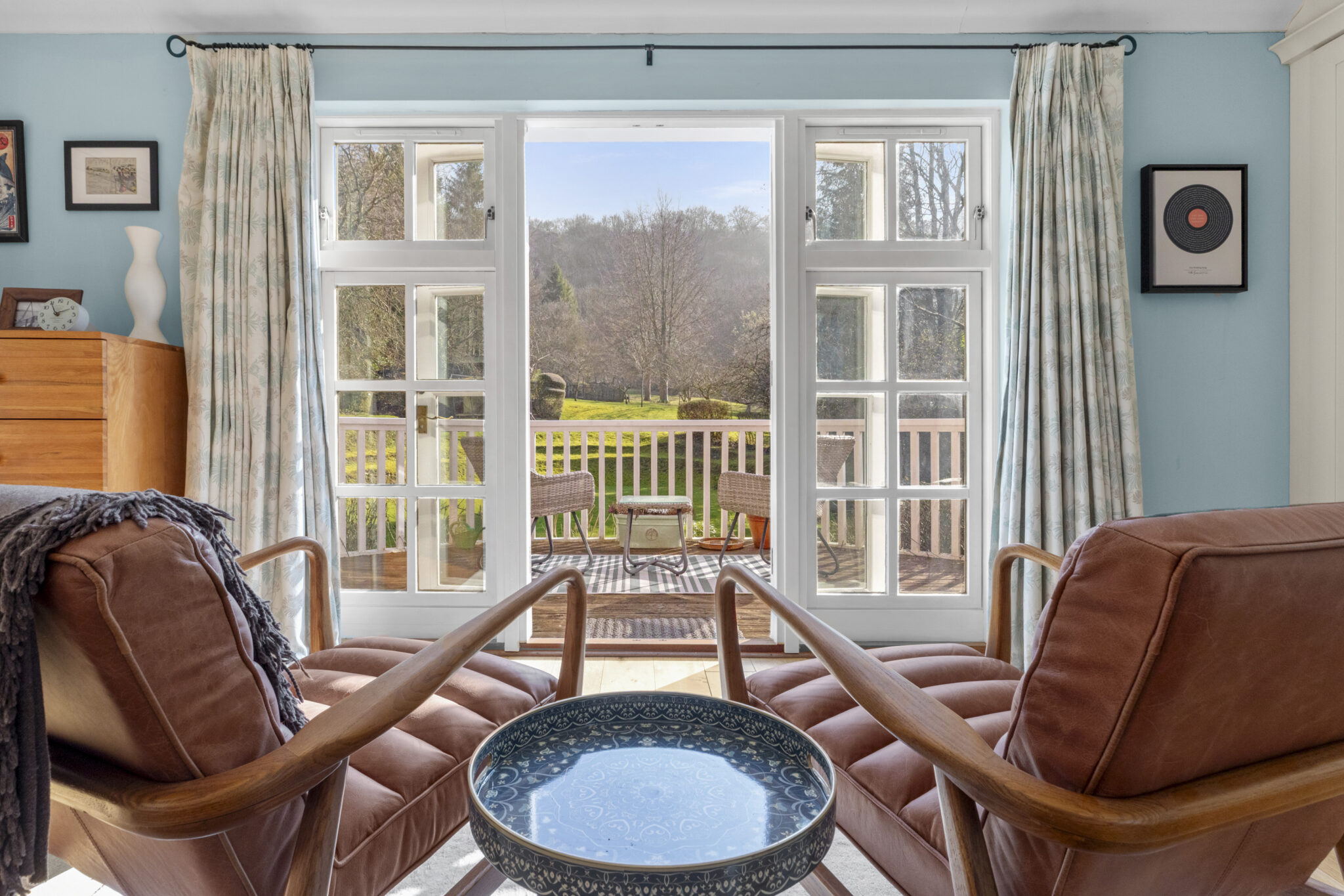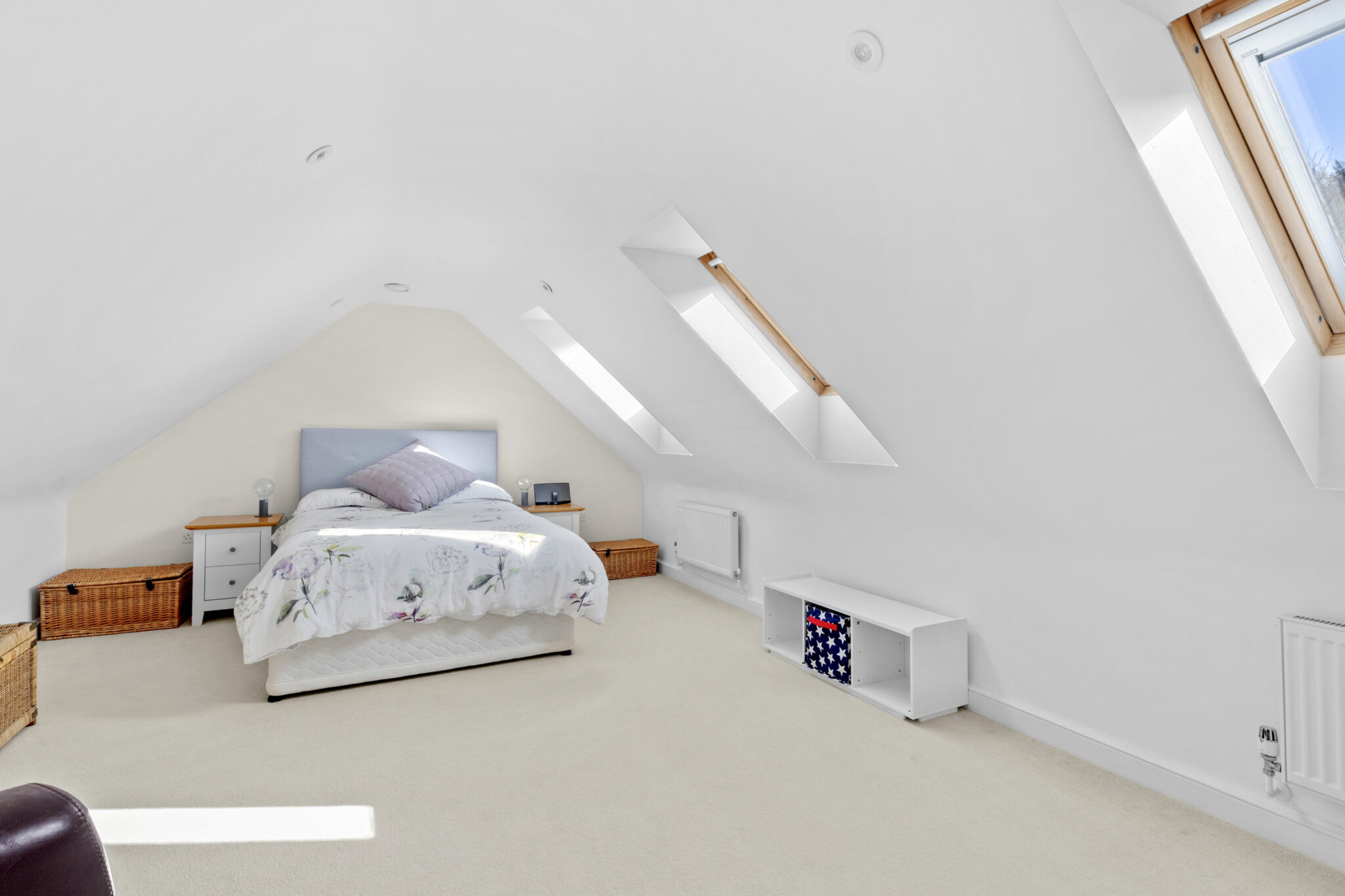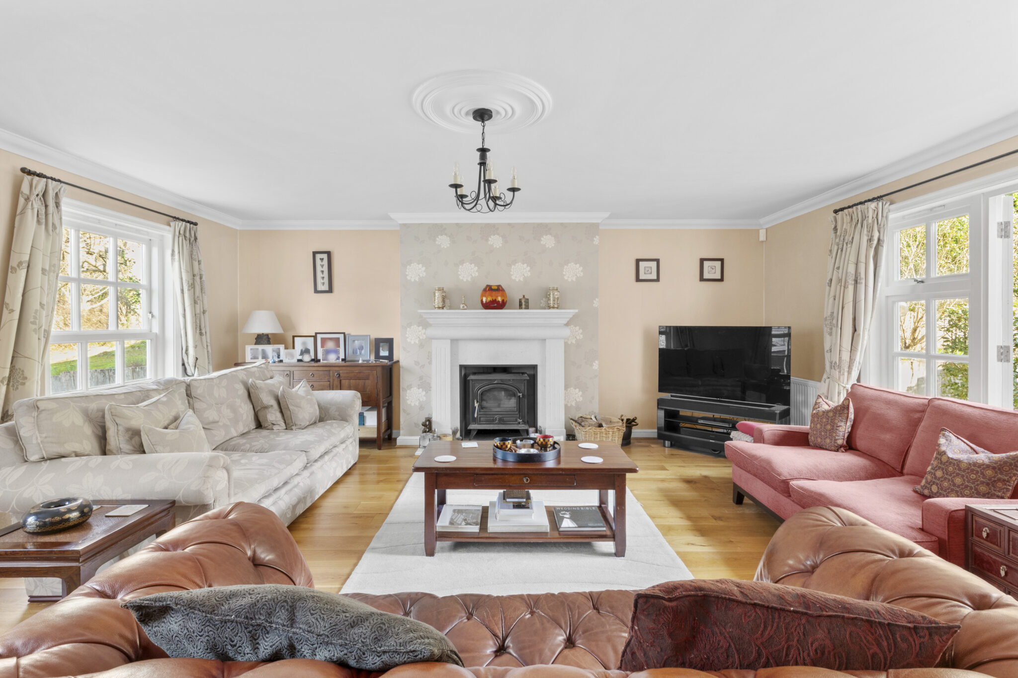 On the first floor is a huge landing with stairs leading on up to the second floor. The main bedroom suite is breathtaking, enjoying a bright triple aspect and doors onto a balcony making the most of the lovely view. The ensuite bathroom has bath and separate shower. There three further bedrooms on this floor, one ensuite and a ‘Jack and Jill’ family bathroom. On the second floor there are three further bedrooms, with one currently used a gym and a family bathroom.