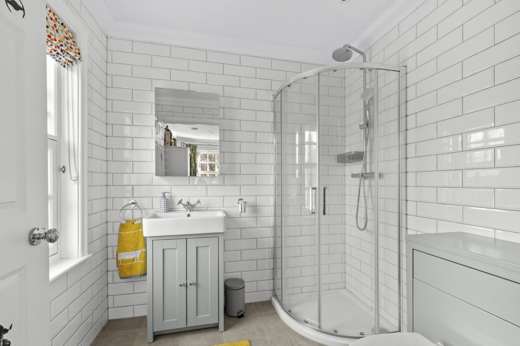 The front door opens into a lobby with space for coats and through to the generous reception hall with stairs up to the first floor. There is a lovely dual aspect square sitting room with fireplace and door to the garden. A well-proportioned dining room and a further snug or playroom. The triple aspect kitchen/breakfast/family room is a really great space, with a comprehensively equipped kitchen area in a sleek contemporary style, incorporating a central island and integrated appliances. Two sets of casement doors connect with the terrace and garden beyond. A utility room and cloakroom complete the ground floor.