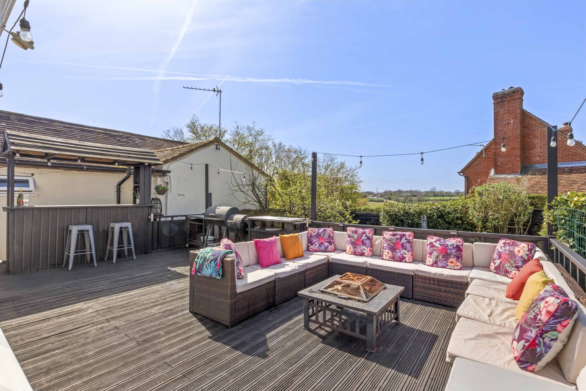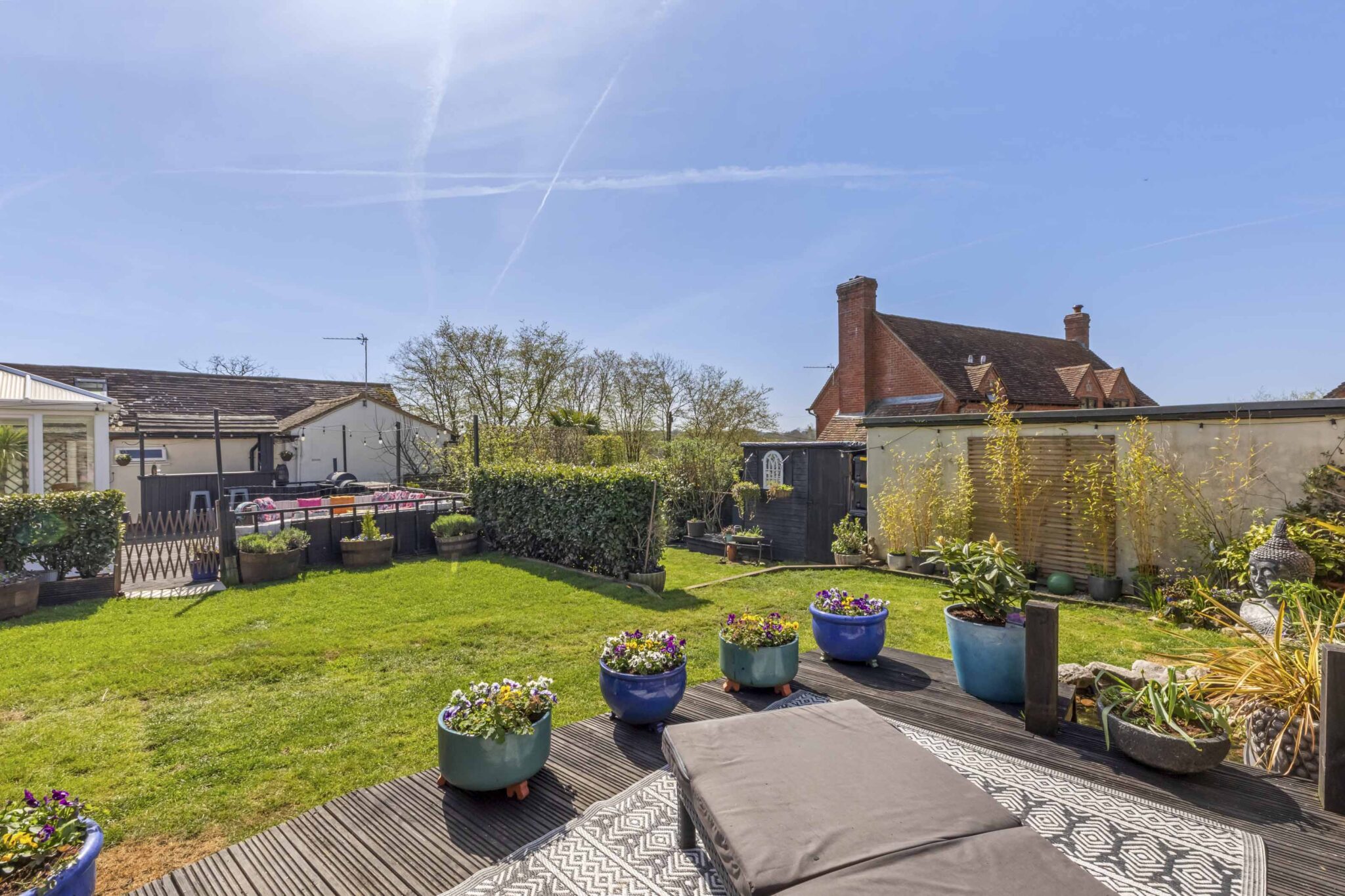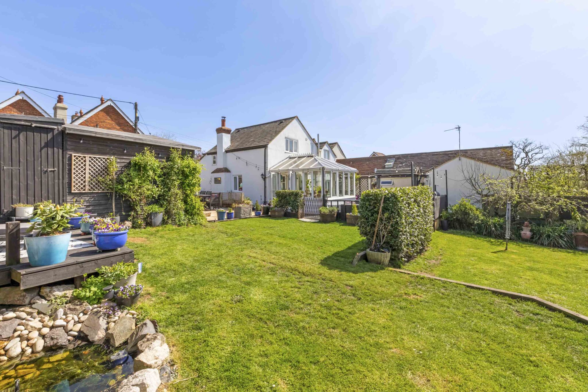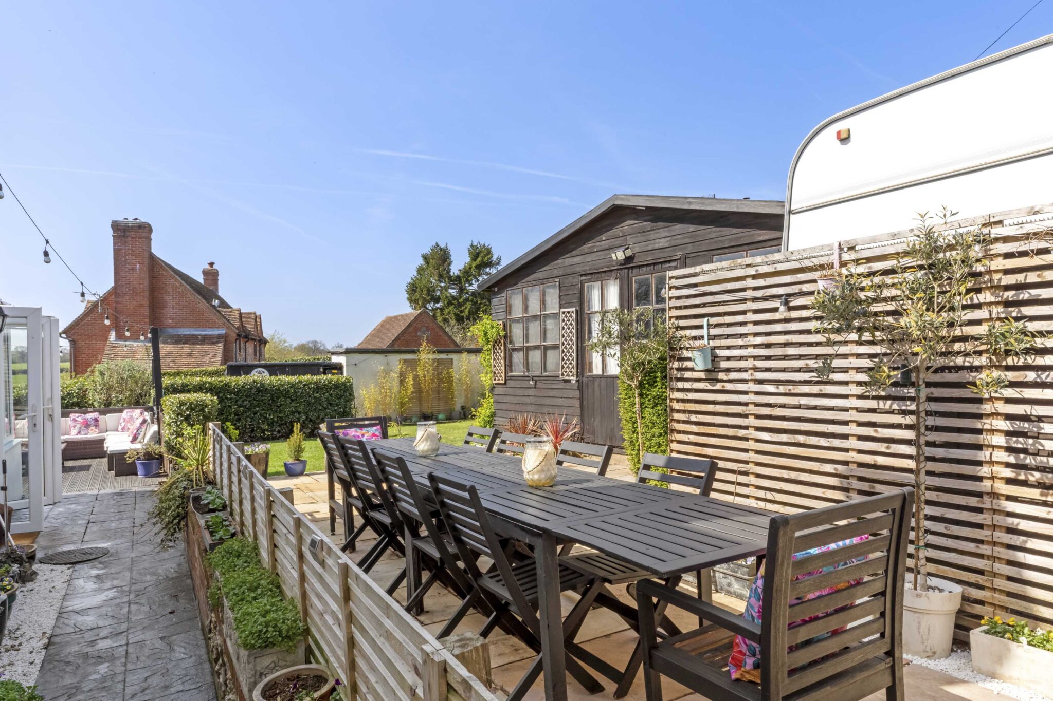 Across the patio is access to a large summerhouse/office with light and power and storage shed behind.