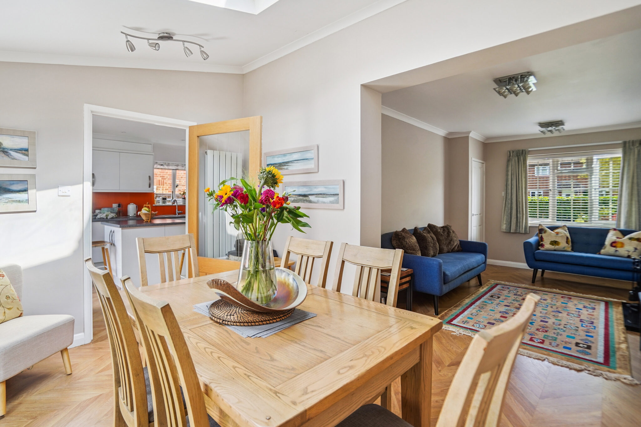 A beautifully presented and extended three bedroom semi detached house with further extension possibilities subject to the usual planning consent, occupying a generous plot size. The property is ideally located only a short distance from Beaconsfield town centre with its extensive range of facilities and train station with rail links to London (Marylebone). In brief the accommodation comprises entrance hall, attractive sitting room with feature fireplace, dining area with skylight and doors to rear garden, superbly fitted kitchen with an extensive range of units and central island, the kitchen leads to a useful snug room and rear garden. On the first floor are three bedrooms and a family bathroom. Outside the property is approached via a block paved driveway providing off road parking facilities and an area of lawn. To the rear the garden is mainly laid to lawn with access to a stunning studio that has a multiple use and features a luxury shower room.