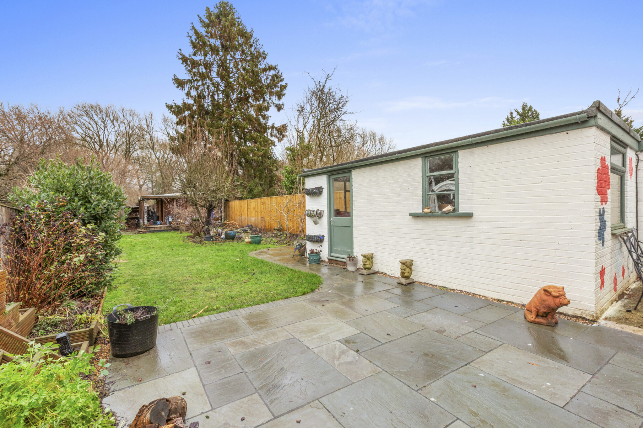 Additional features further elevate this home’s appeal. The expansive rear garden is a true highlight, boasting a well-kept lawn, landscaped areas with decorative stones and a small pond, a practical storage shed, and a workshop—ideal for hobbies or additional storage. The sizeable patio is perfect for al fresco dining or entertaining in the warmer months. Off-road parking is provided by a generous gravel driveway, ensuring convenience for both homeowners and visitors.