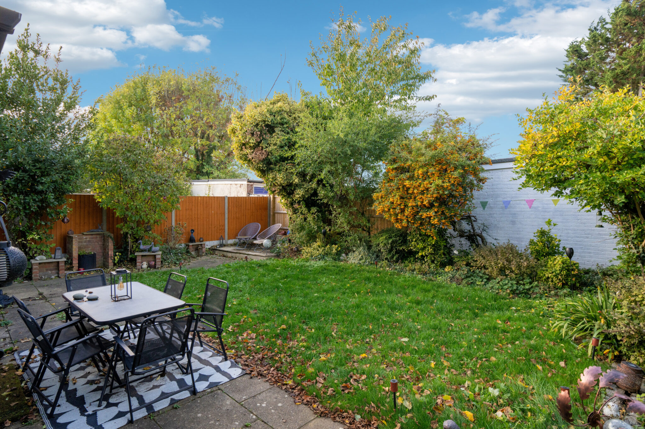 Outside, the wrap-around garden offers a lovely space to unwind, featuring a paved terrace ideal for al fresco dining. The property also includes a private driveway and single garage for added convenience.