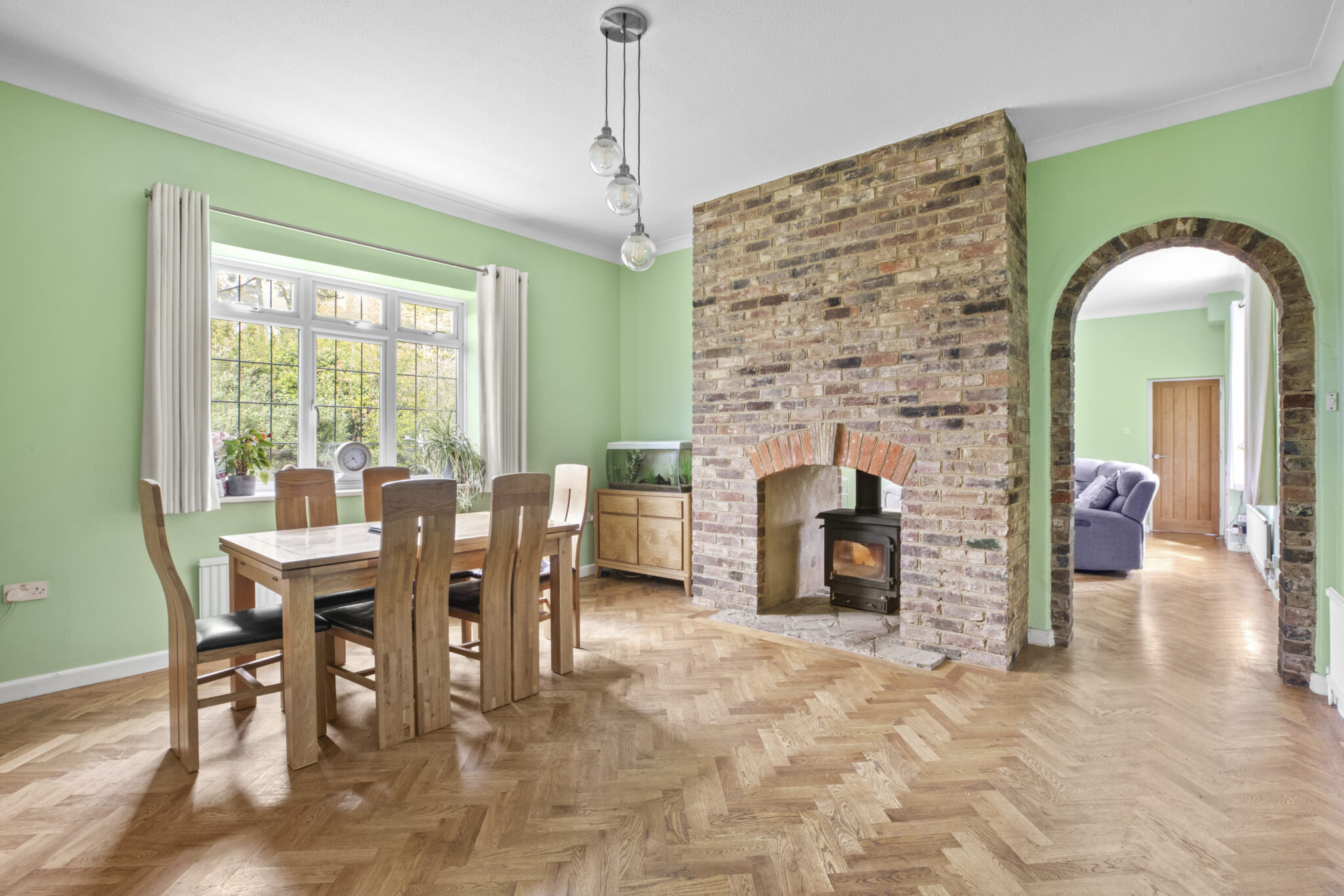 This attractive four-bedroom end of terraced house is situated in the highly sought-after area of Halton, within a quiet residential development that combines a convenient village setting with excellent access to Aylesbury, Wendover, and surrounding areas. The property offers spacious and well-balanced accommodation throughout, designed to meet the needs of modern family living. Upon entering, you are greeted by a bright and welcoming living room, which features a dual-aspect wood burner shared between the living and dining areas (creating a striking focal point and a warm, inviting atmosphere for relaxing or entertaining). The sleek, modern kitchen is a standout feature, boasting integrated appliances, ample cupboard storage, and generous worktop space, making it both practical and stylish for every-day use. The principal bedroom benefits from an en-suite shower room, offering privacy and convenience, while three further well-proportioned bedrooms provide flexibility for family, guests, or home office use. The family bathroom is tastefully appointed, complementing the home’s contemporary feel. Additional advantages include driveway parking with access to a garage, ensuring ample space for vehicles and storage.