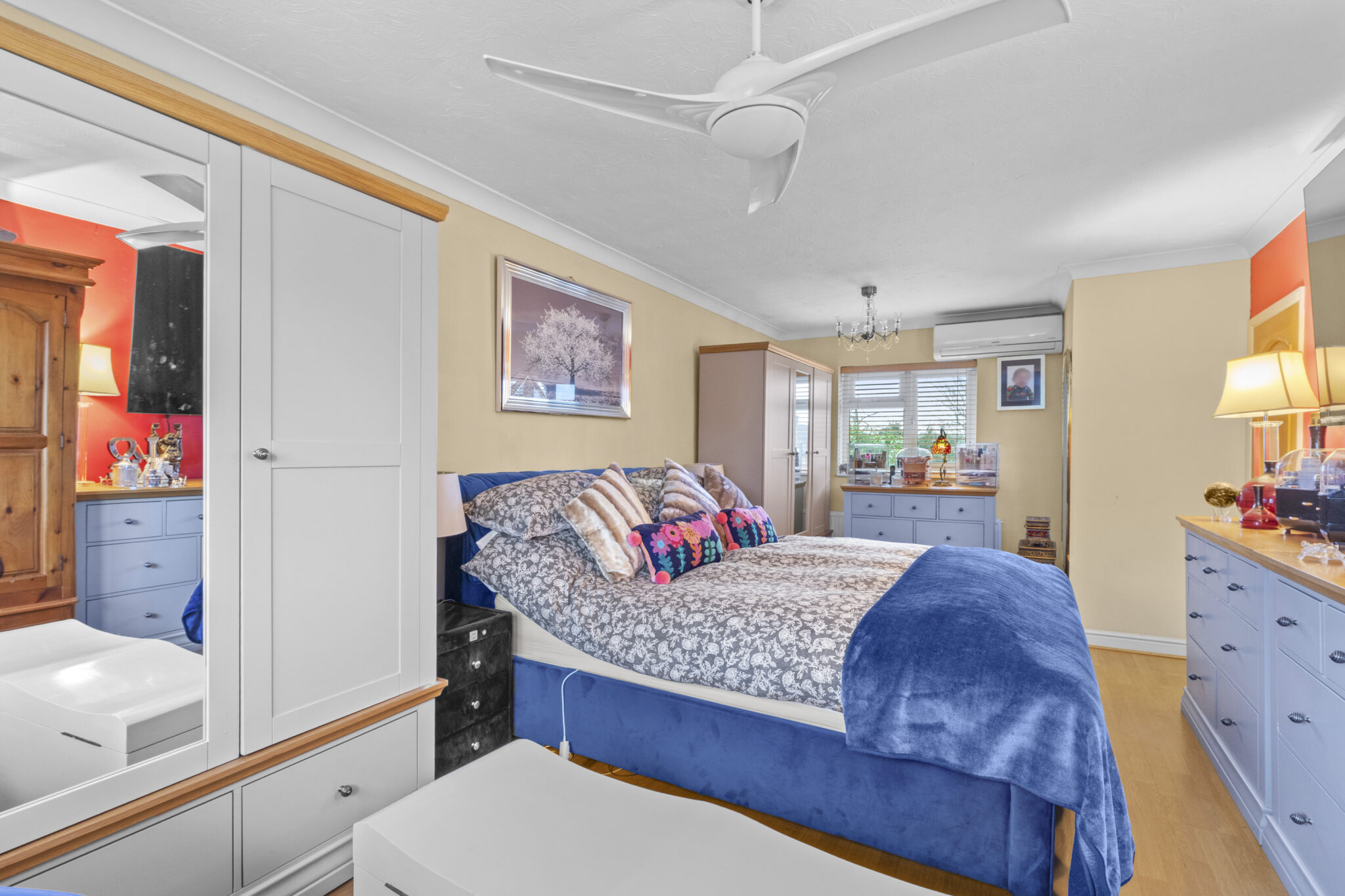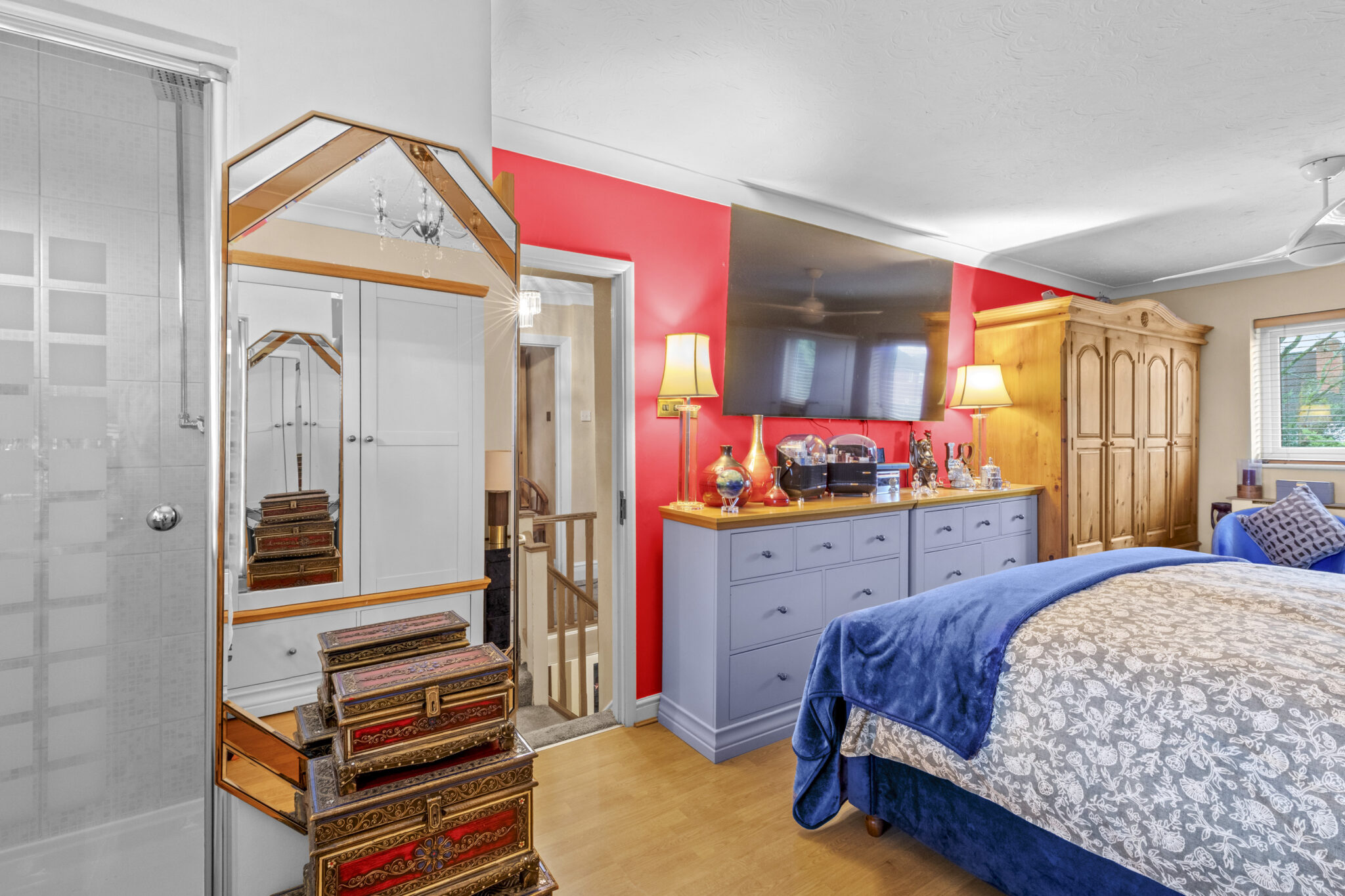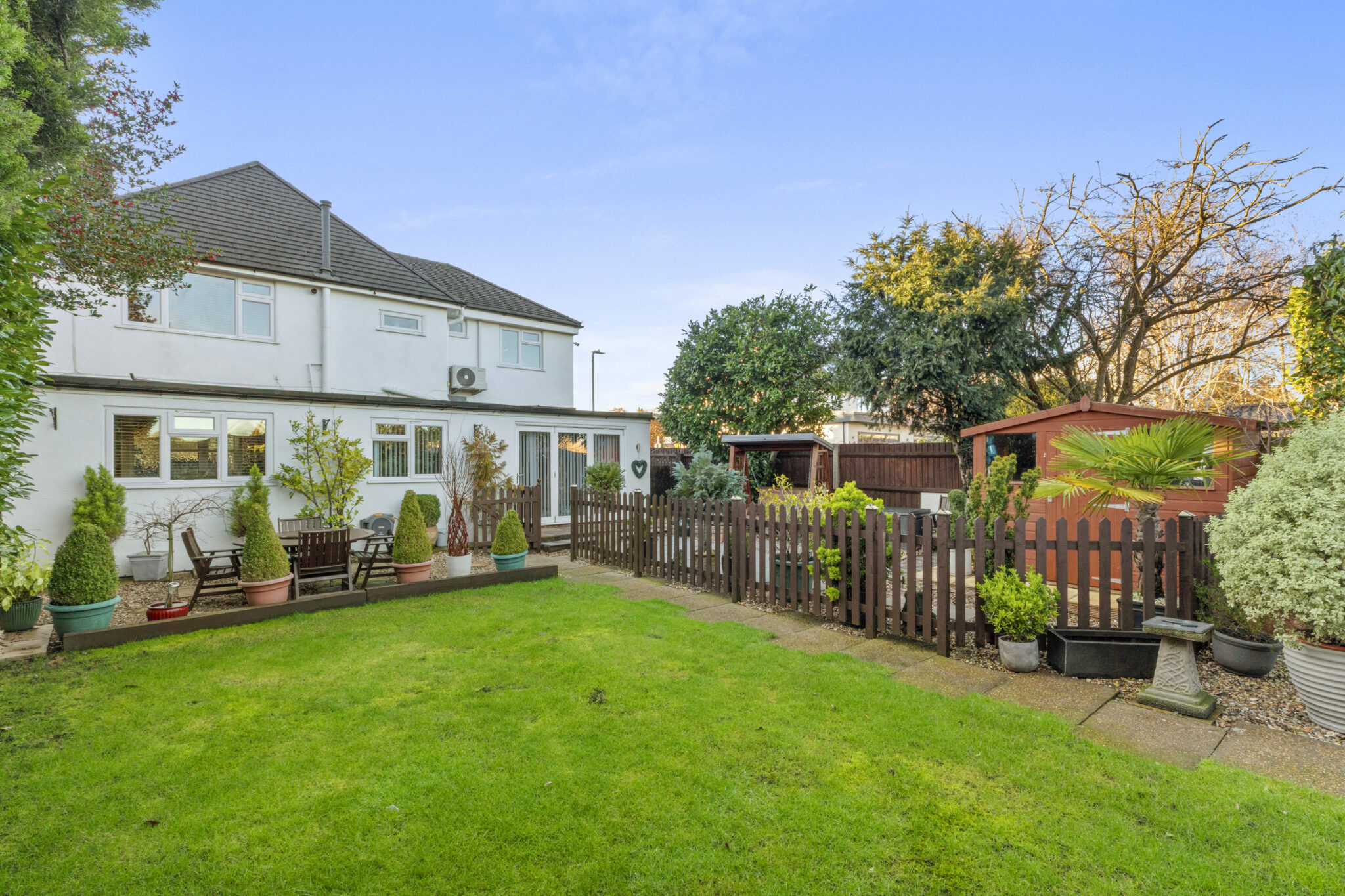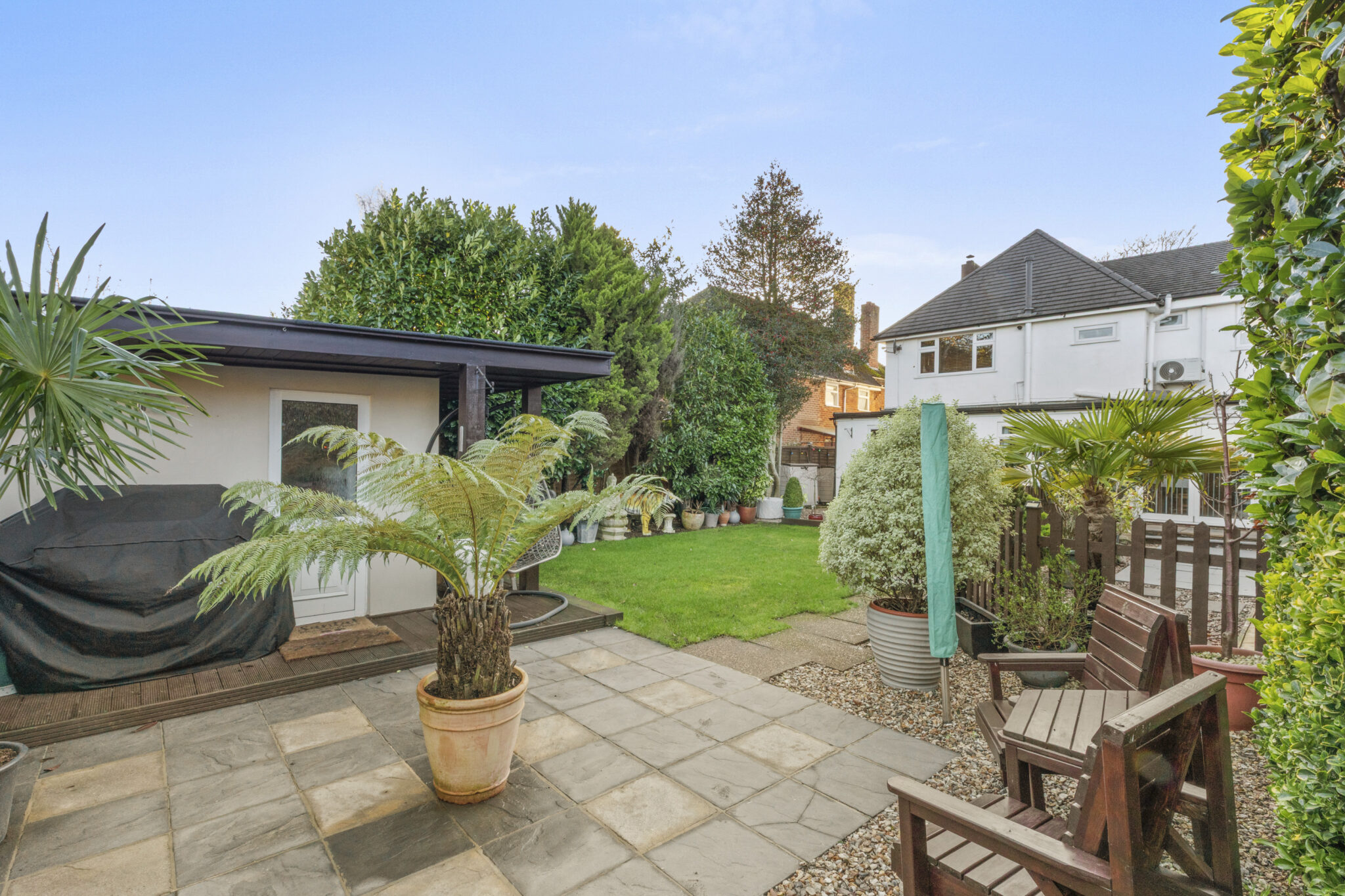Gated side access leads from both sides of the property to a delightful level rear garden again with shingle terrace and immaculate lawn with mature screening. There is a picket fence dividing from a further shingle area and a good-sized rear patio adjacent to the summerhouse/studio (light and power) with veranda style seating area with lighting and timber deck.