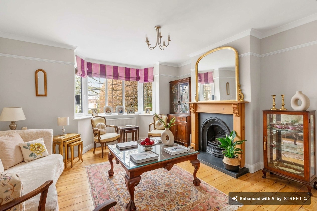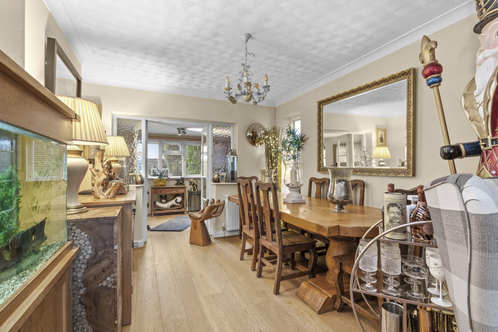 On the ground floor there is a porch and welcoming entrance hall with spacious cloakroom and balustrade staircase leading to the first floor. Wooden flooring leads either side to versatile reception space which includes living room with log burner, dining and family areas and a study to the rear. There are attractive bay windows on the front aspect.