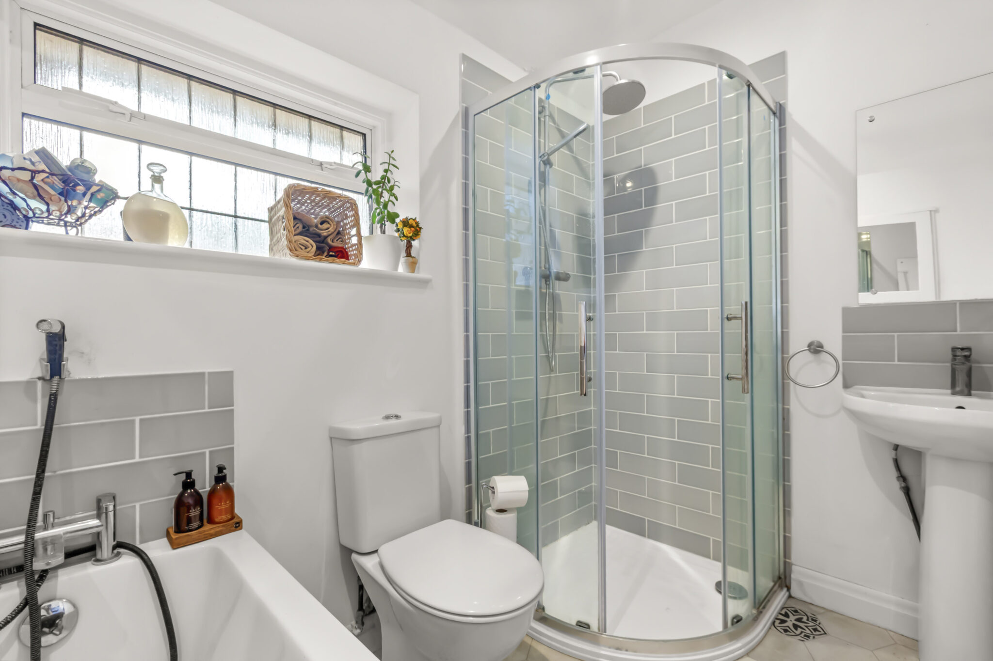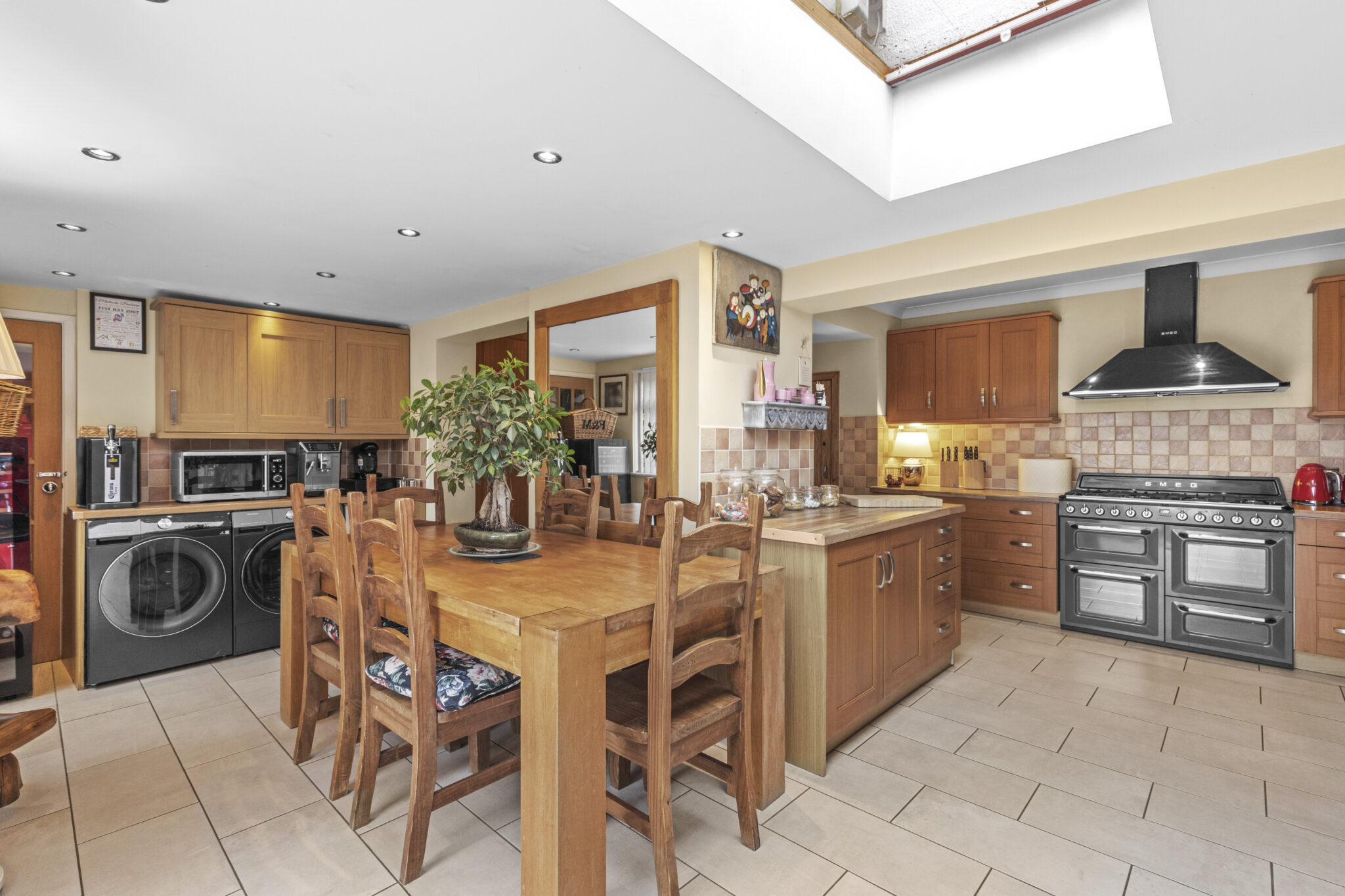 The kitchen/breakfast room is a lovely individual room with bi-folds to the garden, modern fittings, a Smeg range cooker, utility area and ceiling skylight. On the first floor there is a spacious front to back main bedroom with corner double shower unit. There are two further double bedrooms (front room with large bay window) and a single bedroom served by a modern bathroom