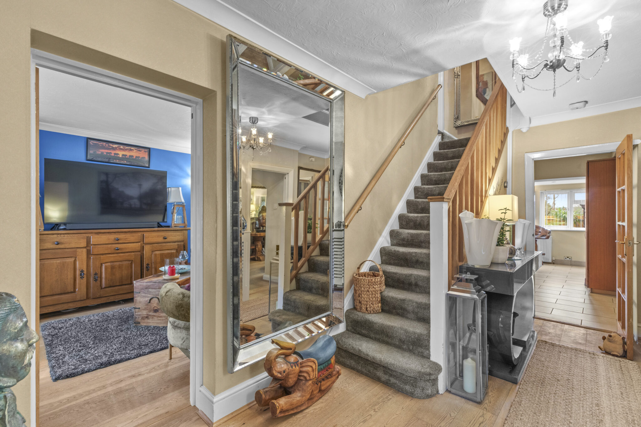 The front and rear gardens are a special feature of the property which is entered via electrically operated gates to a shaped shingle driveway providing excellent parking facilities and mature trees providing excellent screening to front and side.