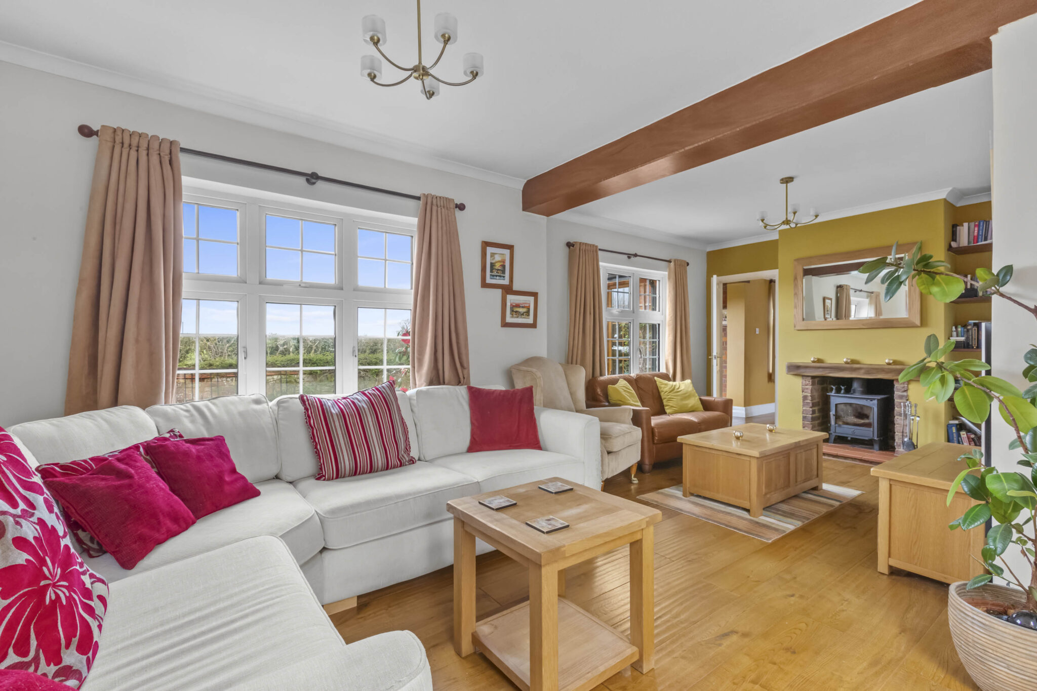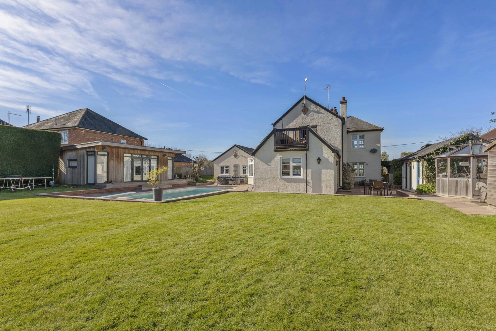 Originally dating back to the 1930s, the property has been thoughtfully extended in the 1990s and around the turn of the century, creating a substantial and highly versatile four-bedroom home. The well-balanced accommodation includes a welcoming sitting room and cosy snug, with another family room, both featuring multi-fuel burning stoves, alongside a large conservatory that enjoys views over the gardens. The kitchen/breakfast room forms the heart of the home, complemented by a study area and a cloakroom. A particularly desirable ground floor suite benefits from direct access to the garden, ideal for guests, multi-generational living, or a private retreat. To the first floor are three bedrooms, including a generous principal bedroom with French doors onto a roof terrace overlooking the formal garden and paddock beyond. This room is further enhanced by an ensuite shower room and a range of fitted wardrobes. In recent years, the home has benefitted from a range of modern enhancements, including the installation of a solar thermal hot water heating system and a 6kW solar panel array with Tesla Powerwall 2 battery storage during 2018, improving both energy efficiency and sustainability.