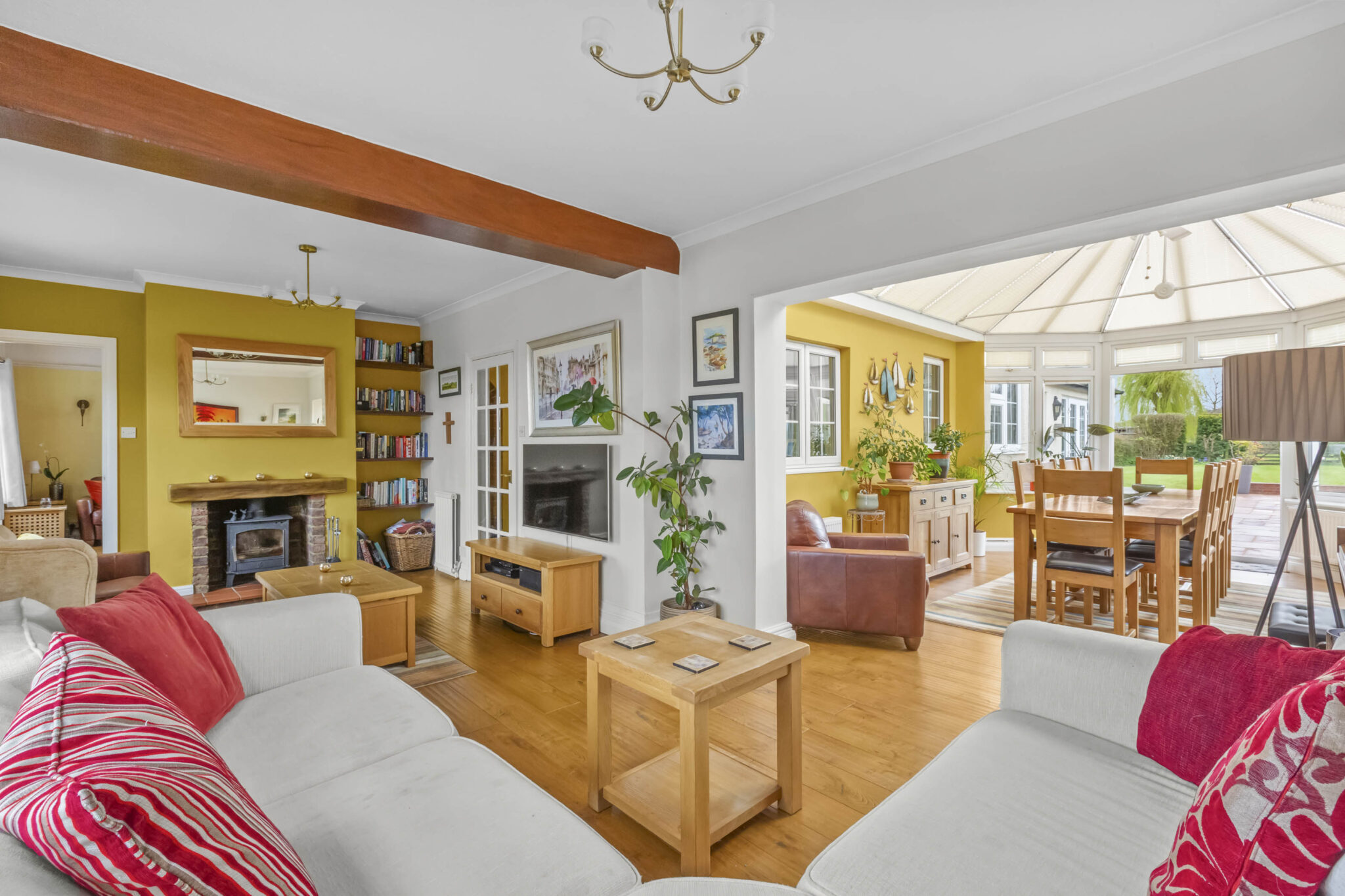 Beautifully extended four-bedroom detached family home in a desirable village setting. Spacious kitchen/family room, stunning garden with summerhouse/office. Generous off-road parking, garage.