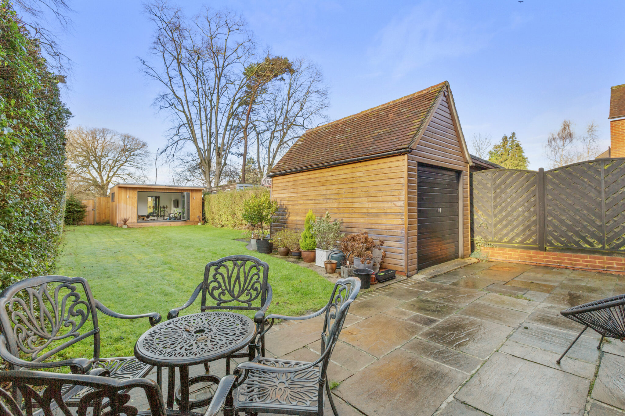 The rear garden is fully enclosed and designed for both relaxation and flexibility, with a patio for outdoor dining and a superb insulated garden office with power, lighting and bifold doors. A rear gate leads directly into the recreation park, while side access, a detached garage and external power and lighting complete this lovely family home.