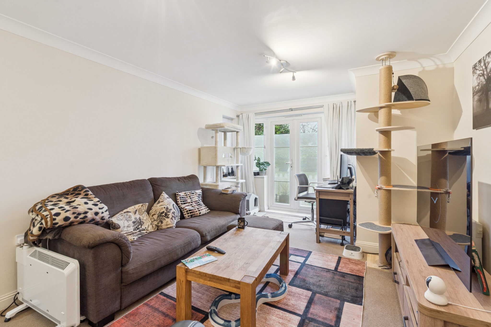The apartment enjoys its own private entrance and a bright, well arranged layout. The open plan living and dining room opens directly onto a generous south-facing patio. The adjoining fitted kitchen includes integrated appliances and works well for everyday living.
