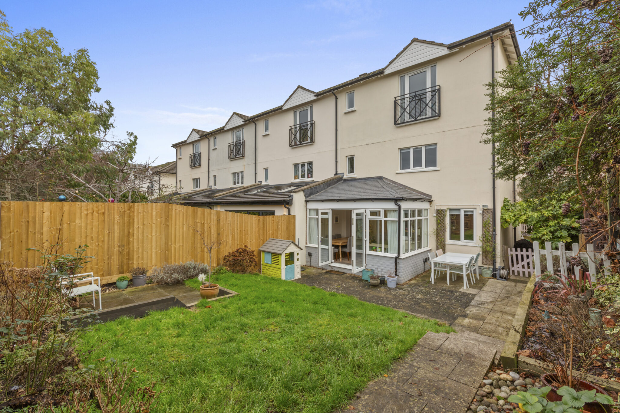 The outside space is equally impressive, with attractive front and rear gardens providing a tranquil setting for relaxation and outdoor activities. The front garden features a patioed area, offering additional space and side access into the rear garden. The generous rear garden provides a private retreat with plenty of space for children to play or for summer entertaining. Off-street parking is located to the rear of the property, accessed through the garden, providing convenience for residents and visitors alike. The rear garden features a lawned area and patio, perfect for alfresco dining or enjoying the sunshine. Thoughtfully designed and well-maintained borders provide a real feeling of privacy and retreat.