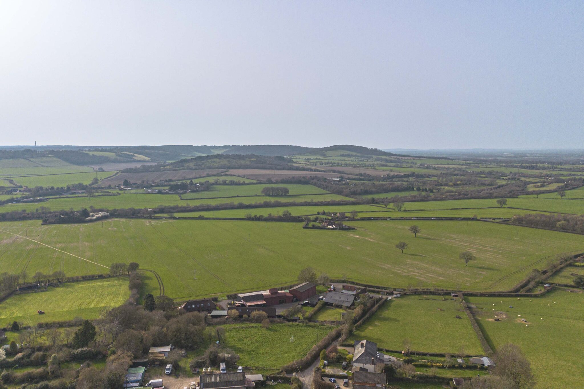 The front door opens into a generous hallway with fitted cupboards and a cloakroom. Steps lead down to an inner hall with double doors opening into a bright dual-aspect sitting and dining room with far-reaching views towards Bledlow Ridge and South Oxfordshire. This level also includes two comfortable double bedrooms with built-in wardrobes, along with a family bathroom fitted with a bath and overhead shower, WC, and washbasin set in vanity storage.