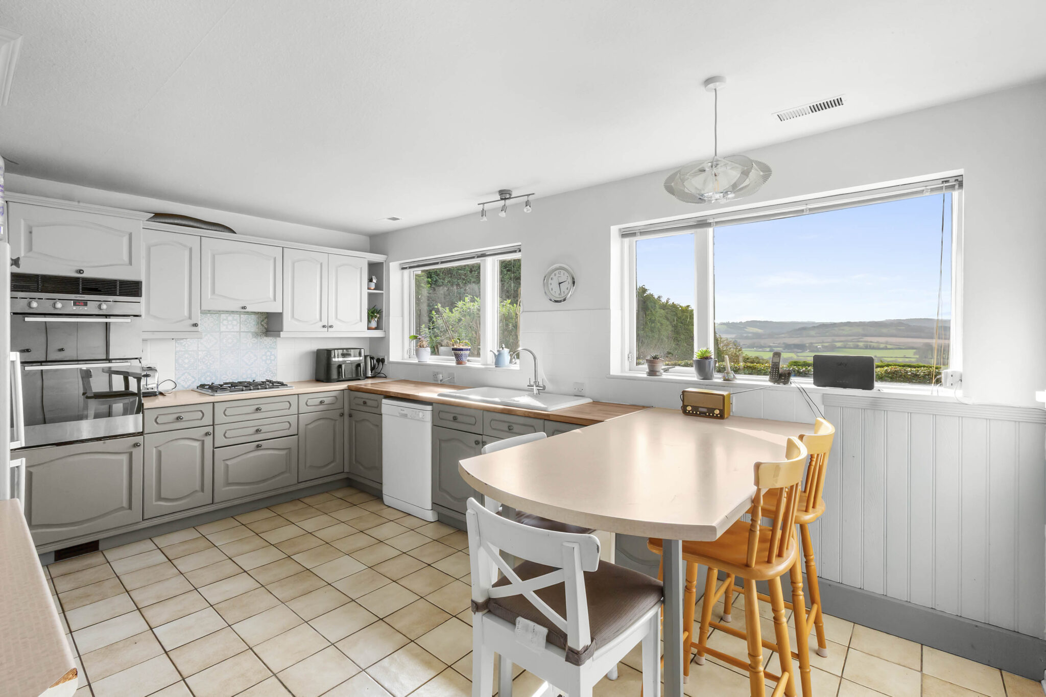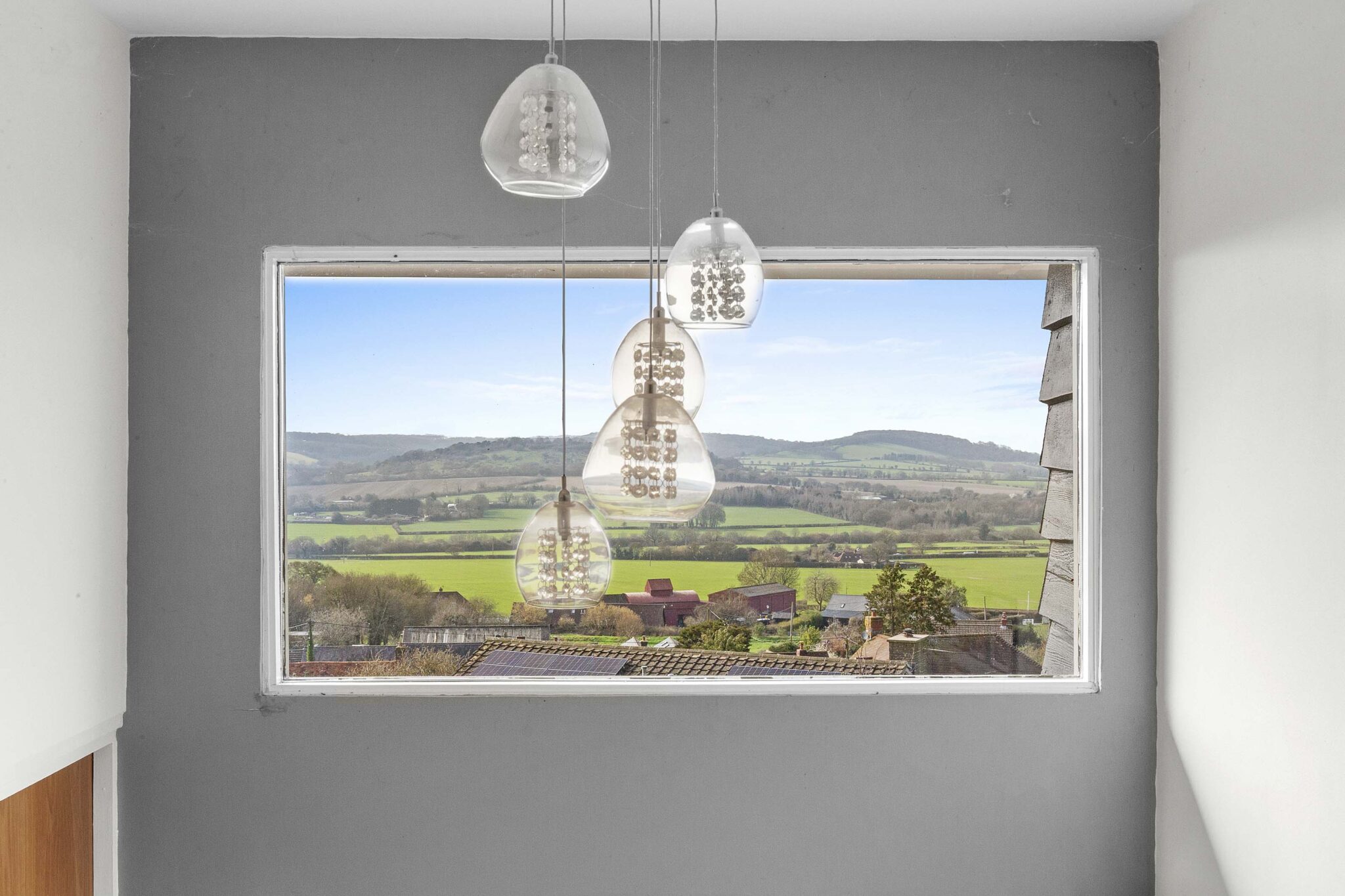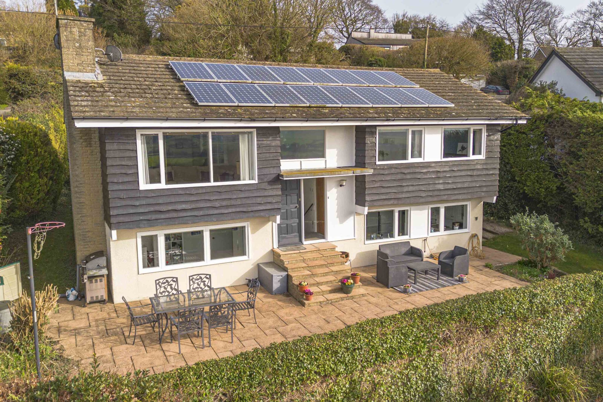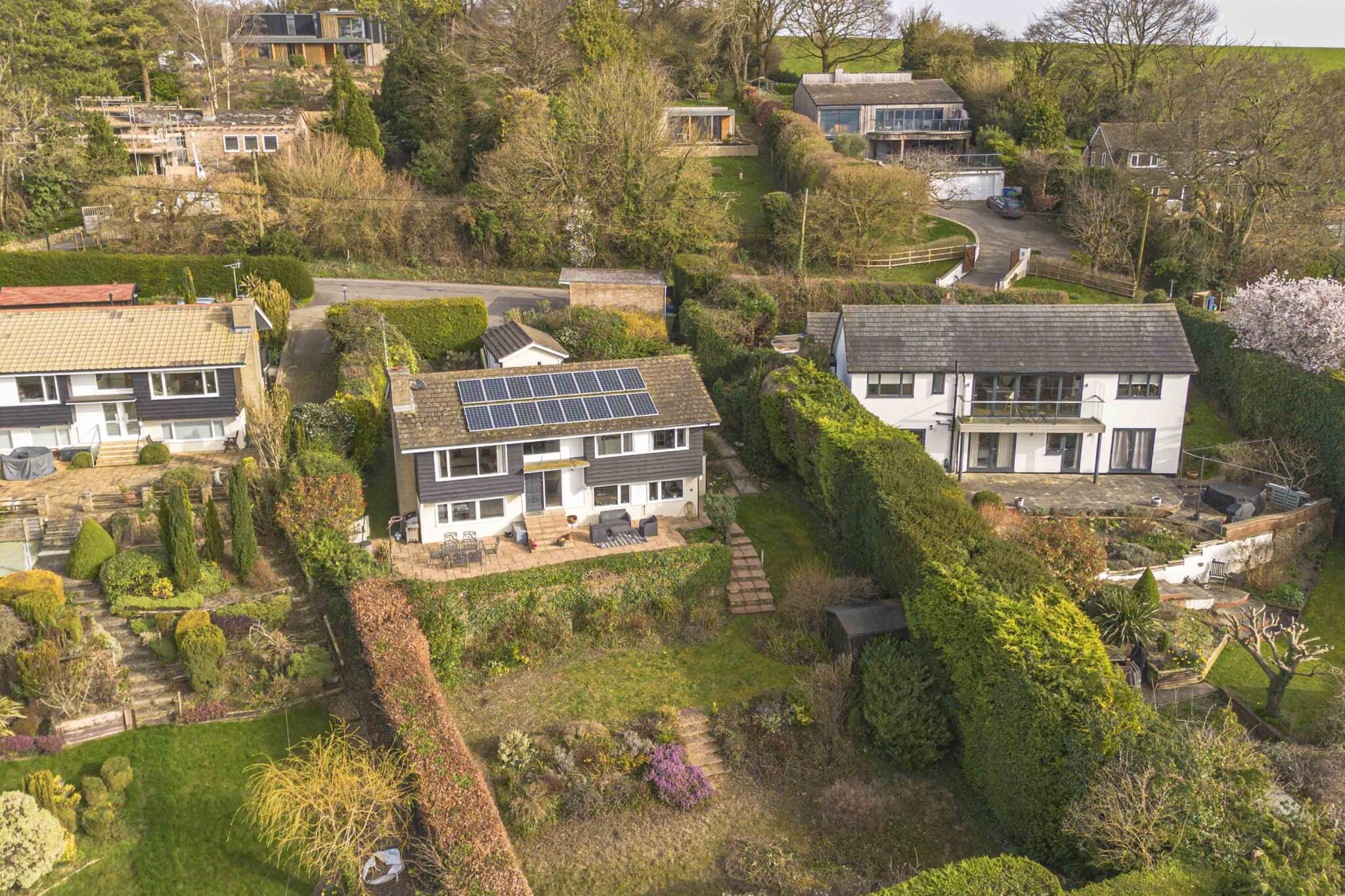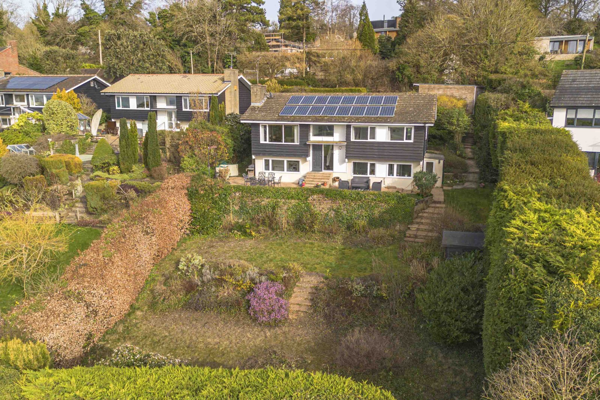 An extended, four-bedroom detached home set on approximately 0.28 acres, enjoying panoramic views over open countryside. Built in the 1960s to a distinctive Canadian-inspired design, the property offers over 2,040 sq. ft. of well-arranged accommodation across three levels and benefits from solar PV (photovoltaic) panels, helping to improve the home’s energy efficiency.