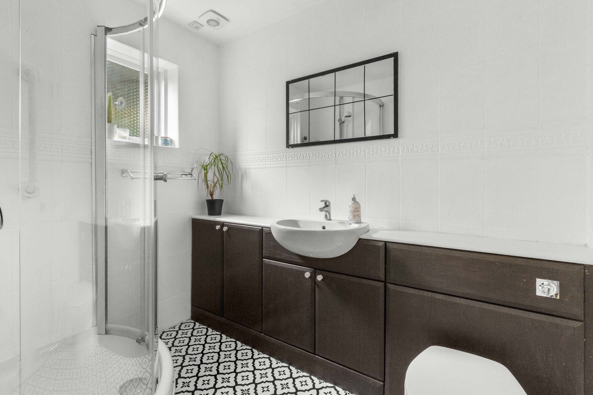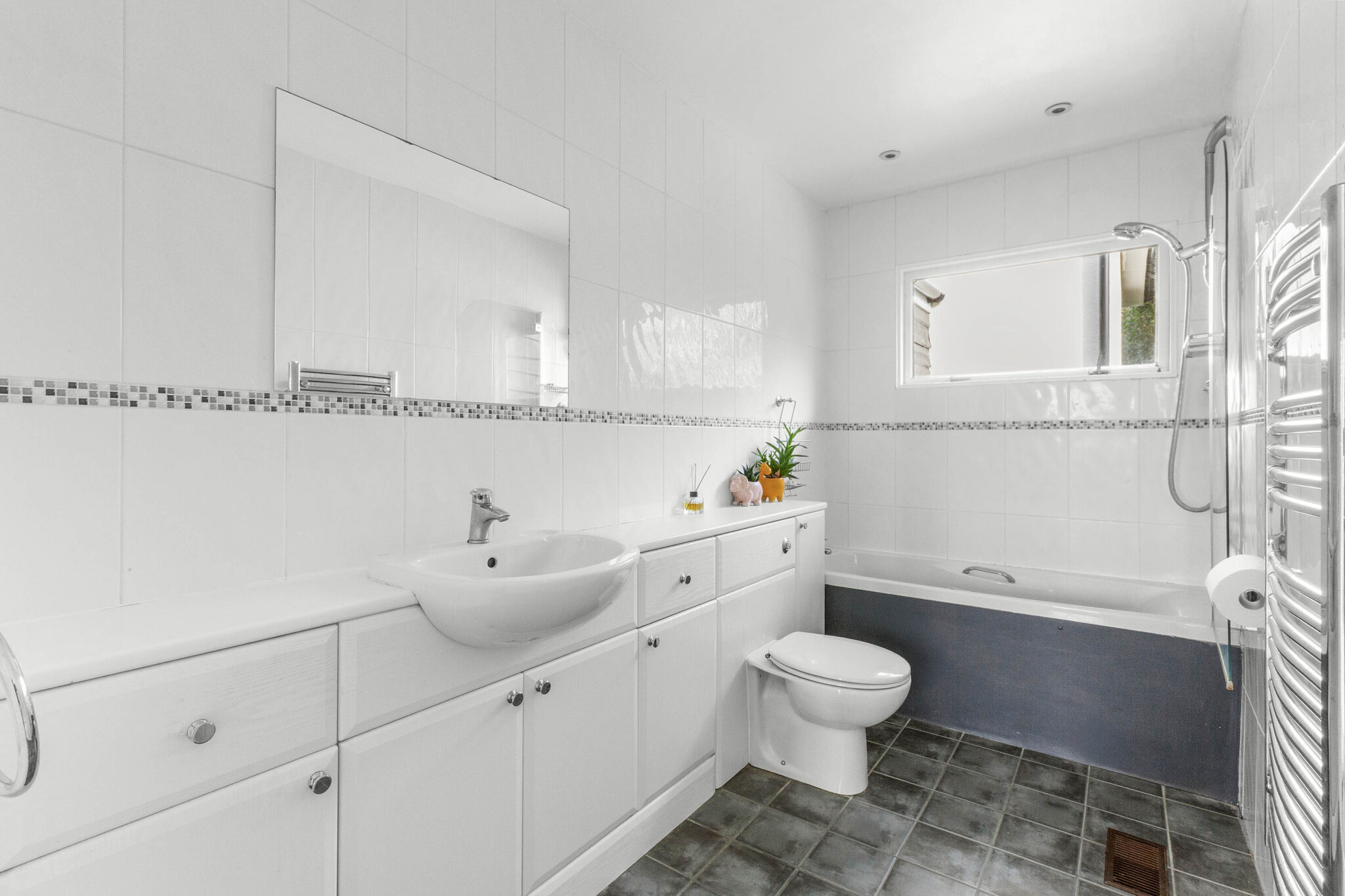 A full-turn staircase leads to the lower ground floor, where there is a versatile family room, a kitchen/breakfast room, a utility/boiler room, and two further double bedrooms. One of these bedrooms connects to a Jack and Jill shower room. A side porch provides useful storage and convenient access to the garden.