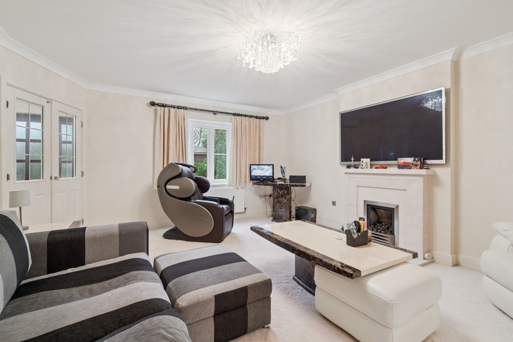 The accommodation comprises four well proportioned bedrooms, two bathrooms including an en suite, four reception rooms, a spacious kitchen breakfast room, together with a separate utility room and cloakroom. To the front, electric gates lead to a substantial driveway offering ample off road parking and access to a detached double garage. This impressive home is offered to the market with the added benefit of no upper chain.
