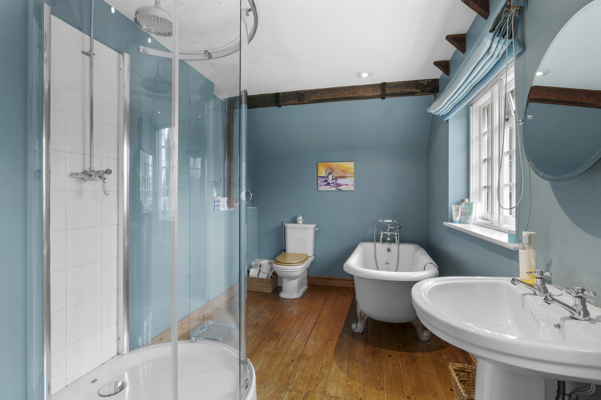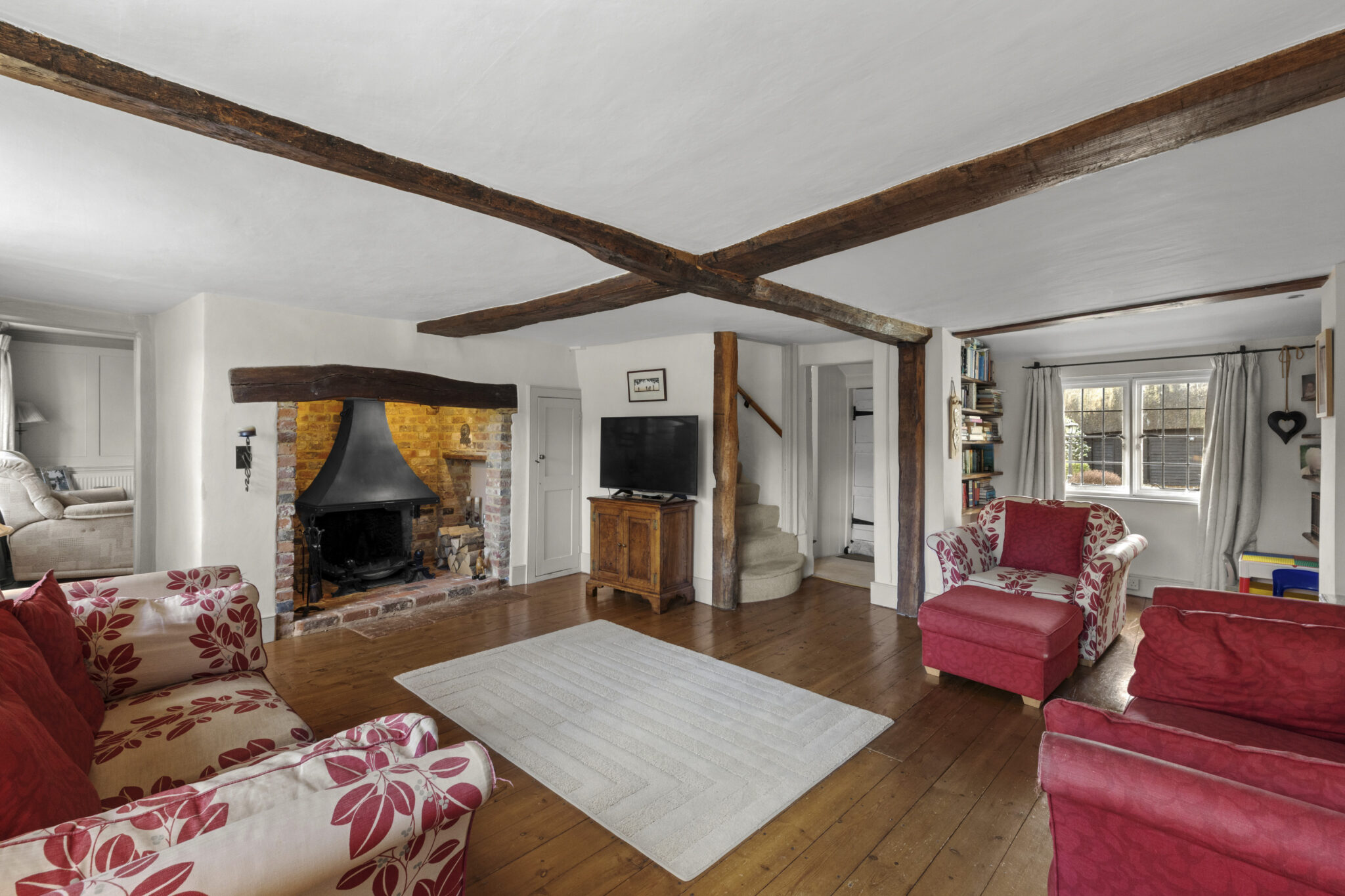The accommodation is light and airy throughout with a lovely traditional ambience. On the ground floor there are four principal reception rooms, including a lovely formal sitting room, a panelled cosy tv/family room, fitted study and a charming formal dining room. The kitchen/breakfast room is in a classic farmhouse style, well equipped and with the essential AGA. This in turn leads through to the utility room and on to the games room, which opens onto the courtyard.