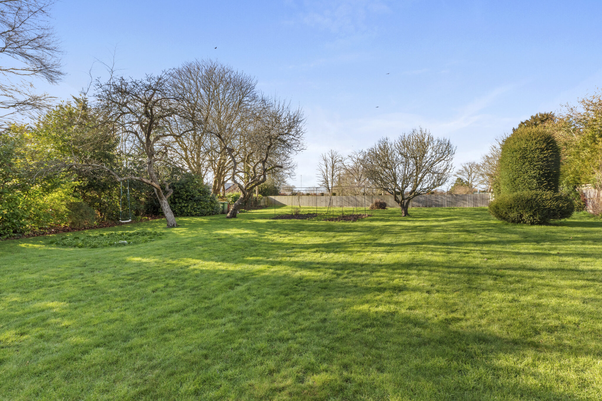 The gardens are laid predominantly to lawn with the boundaries enclosed by fencing or hedging. There are established borders and mature fruit trees.