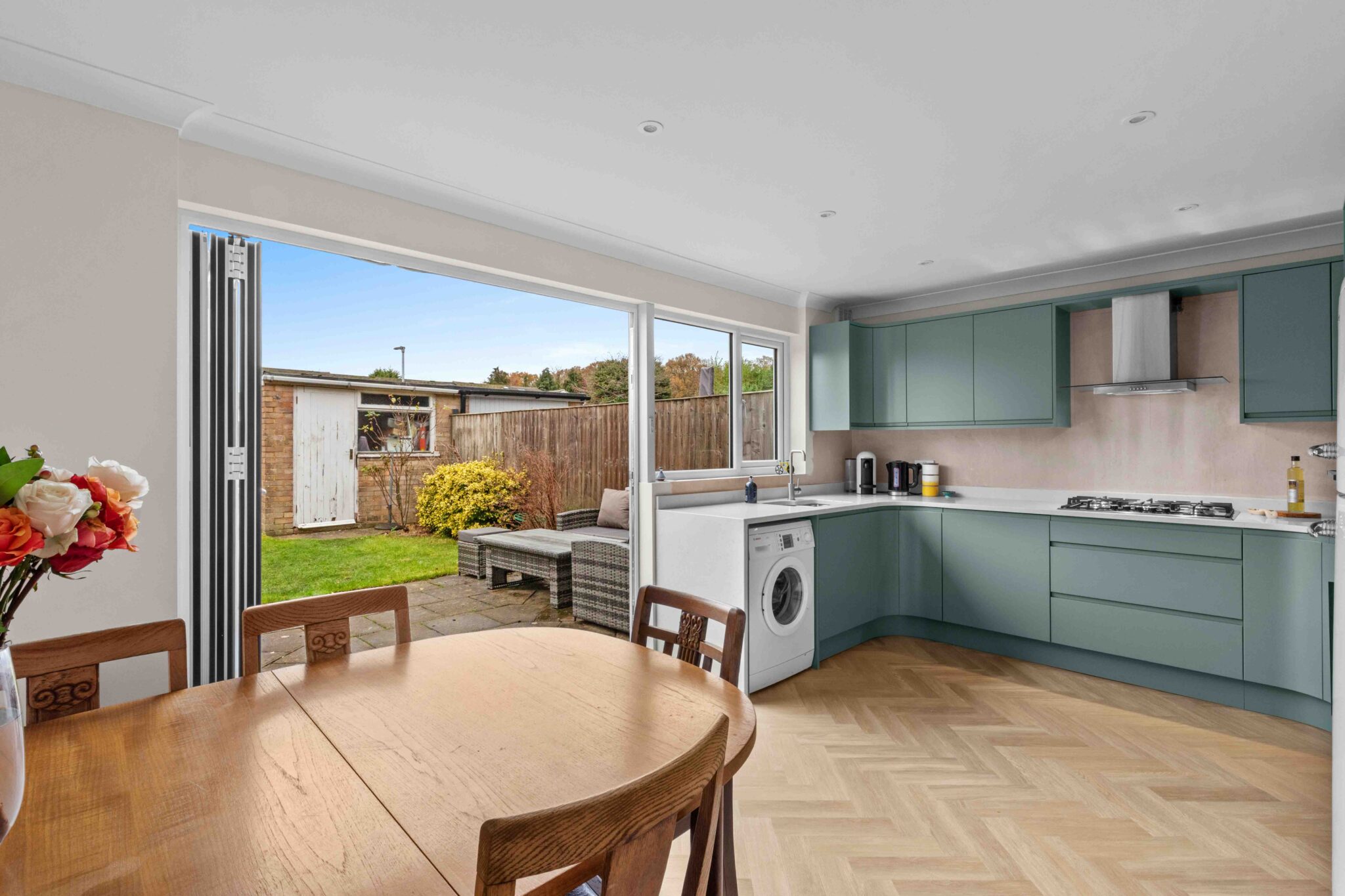 Step inside and you'll find an inviting entrance porch that leads to a bright and airy sitting room, setting the tone for relaxed family living. The recent makeover of the open-plan kitchen and dining area has elevated the home's appeal, boasting a stylish range of base and eye-level units, integrated appliances, and patio doors that open up to the rear garden.